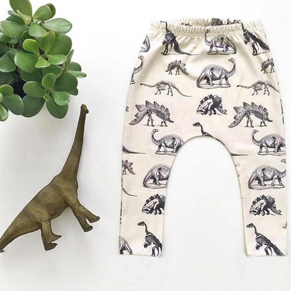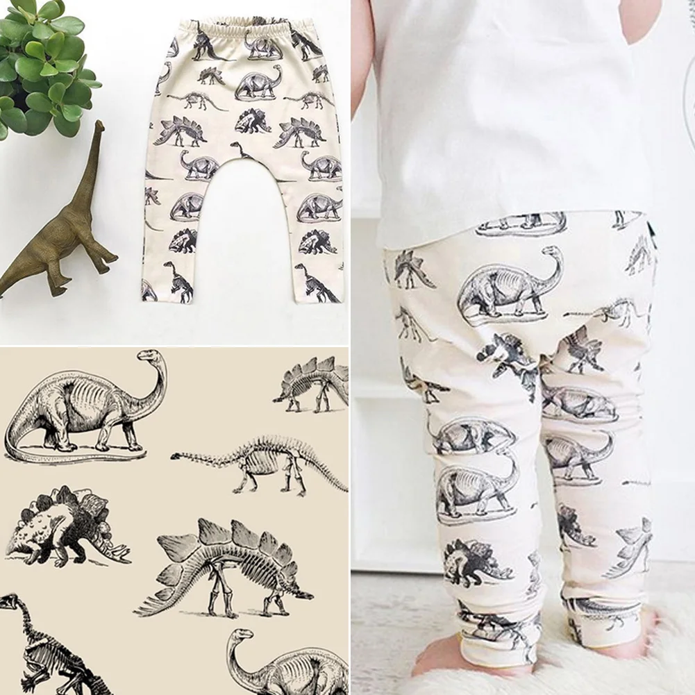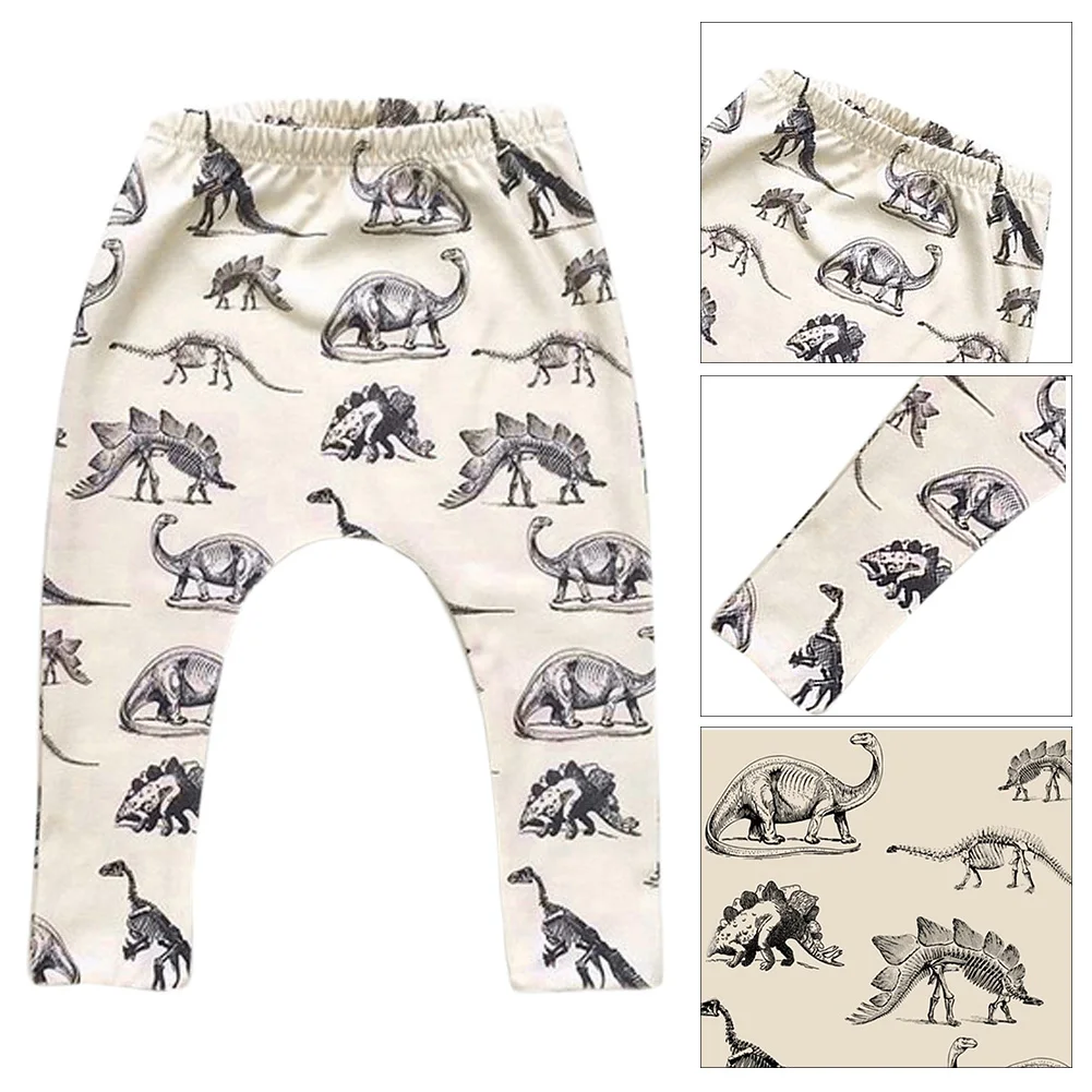 Newborn Baby Leggings Autumn Dinosaur on Cream Organic Cotton Baby Leggings Pants Children Harem trousers Baby Boy Clothing
