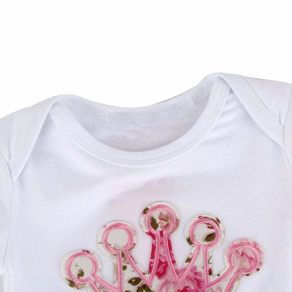 0-18M Cute Newborn Baby Girls Solid Color Crown Print Clothes Short Sleeve Bodysuit + Lovely PP Pants 2 Pcs Set