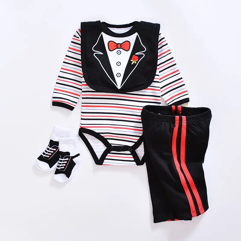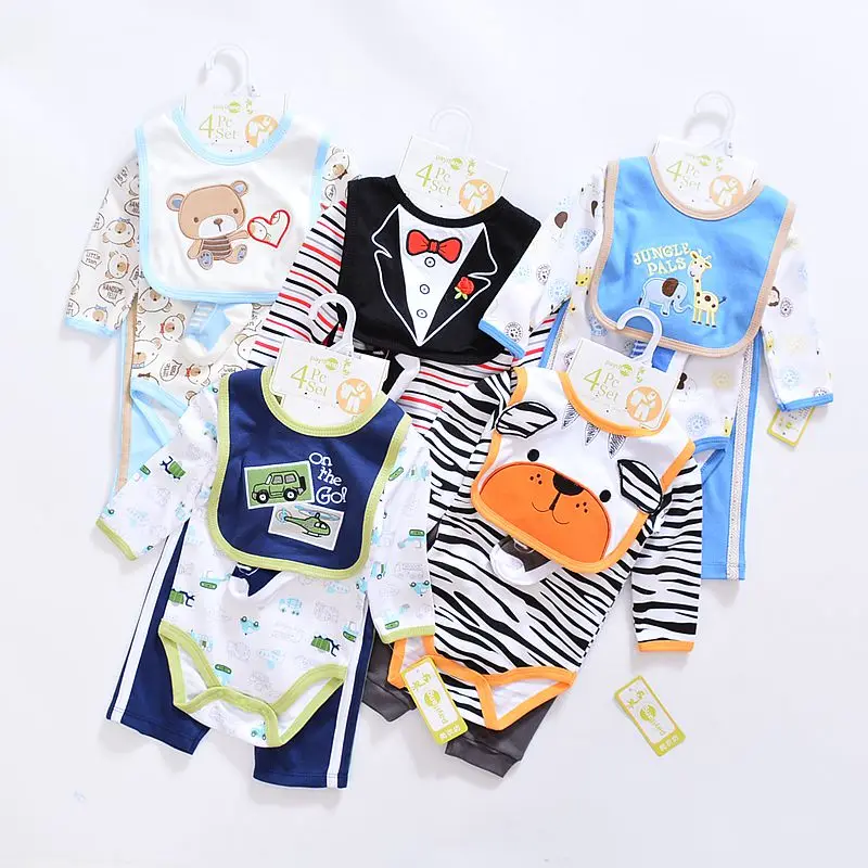 2017 baby Boy’s girls Clothing Set cotton Cartoon baby clothes Newborn Kids 4pcs suits infant rompers+pants+socks+Bib mix