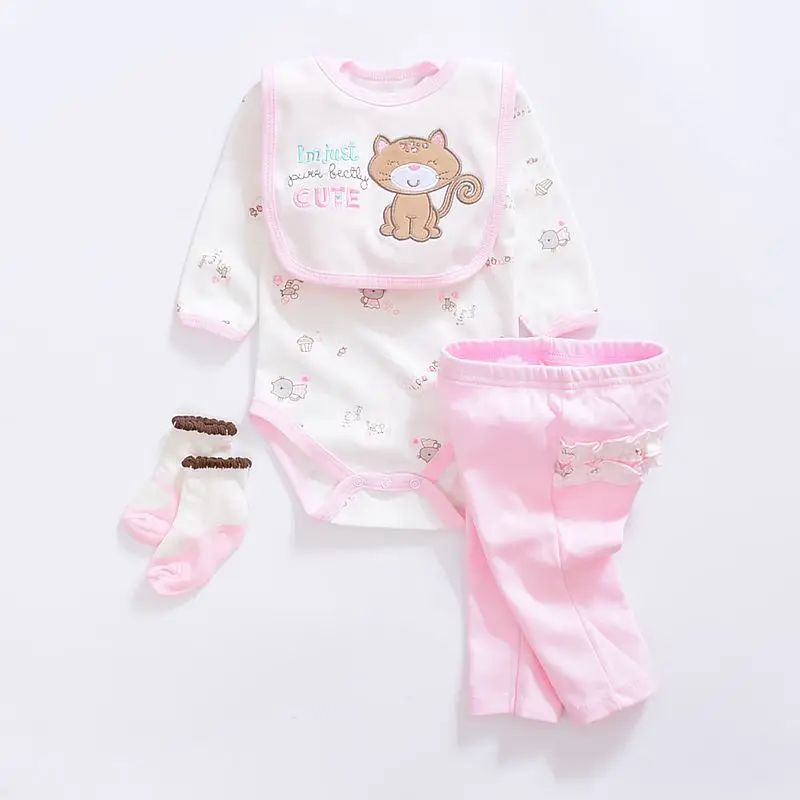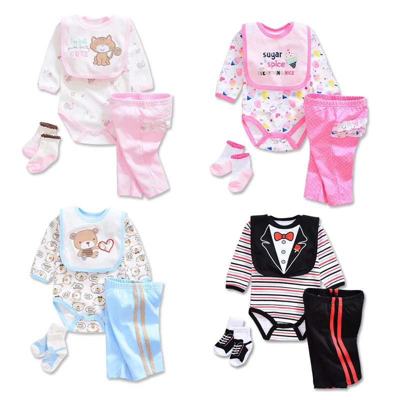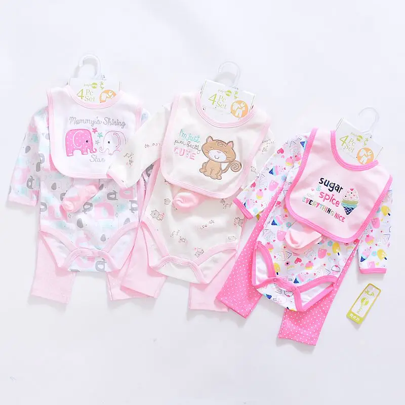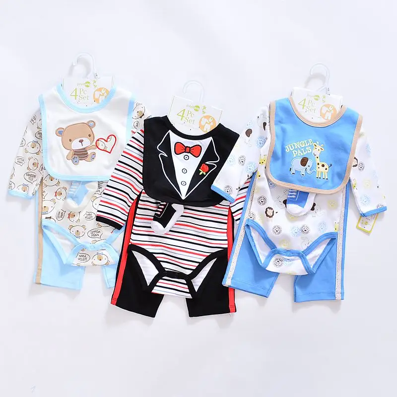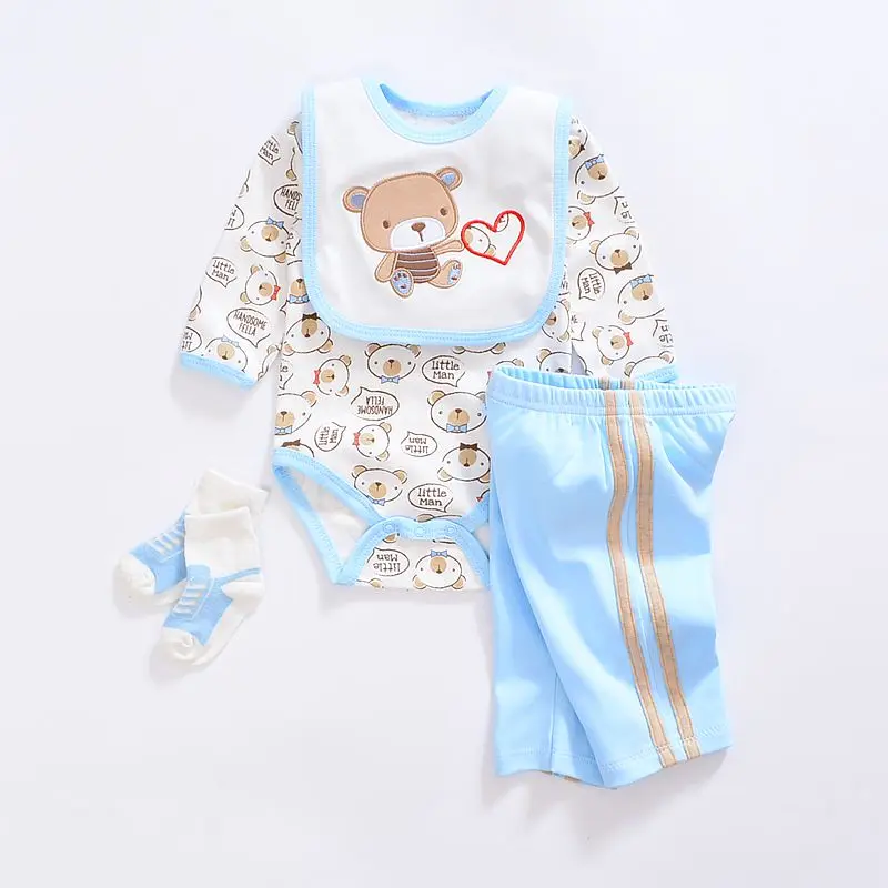 2017 baby Boy’s girls Clothing Set cotton Cartoon baby clothes Newborn Kids 4pcs suits infant rompers+pants+socks+Bib mix