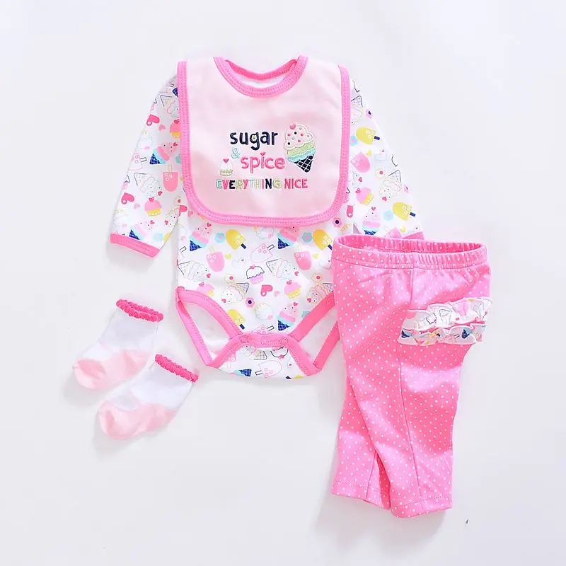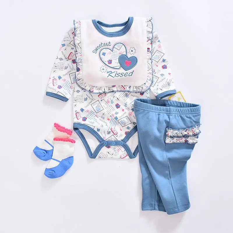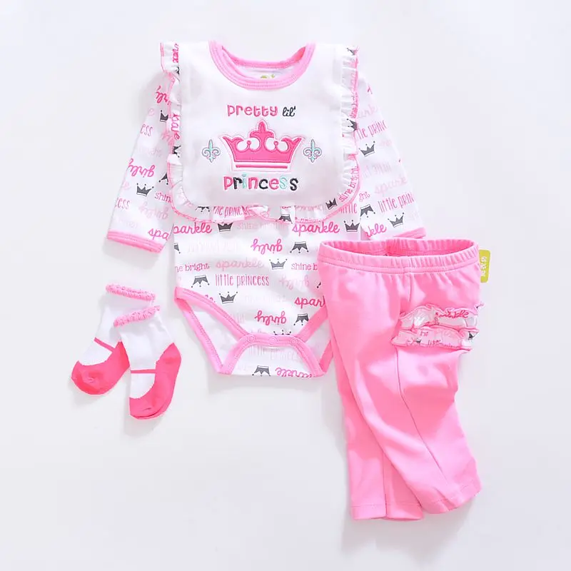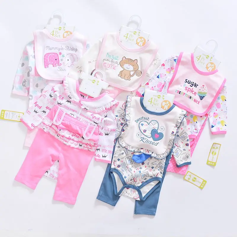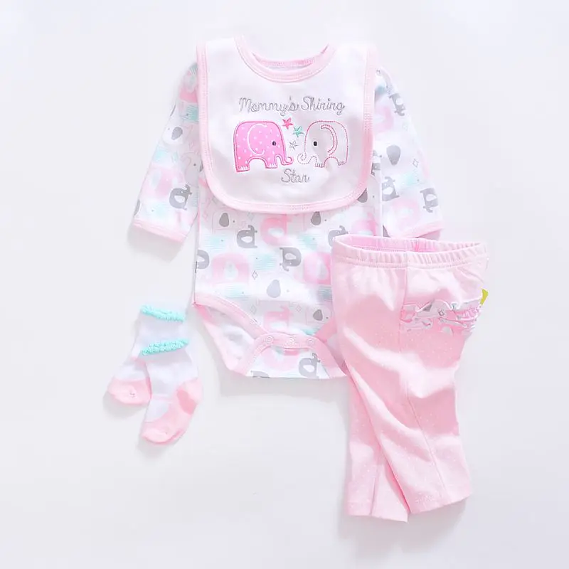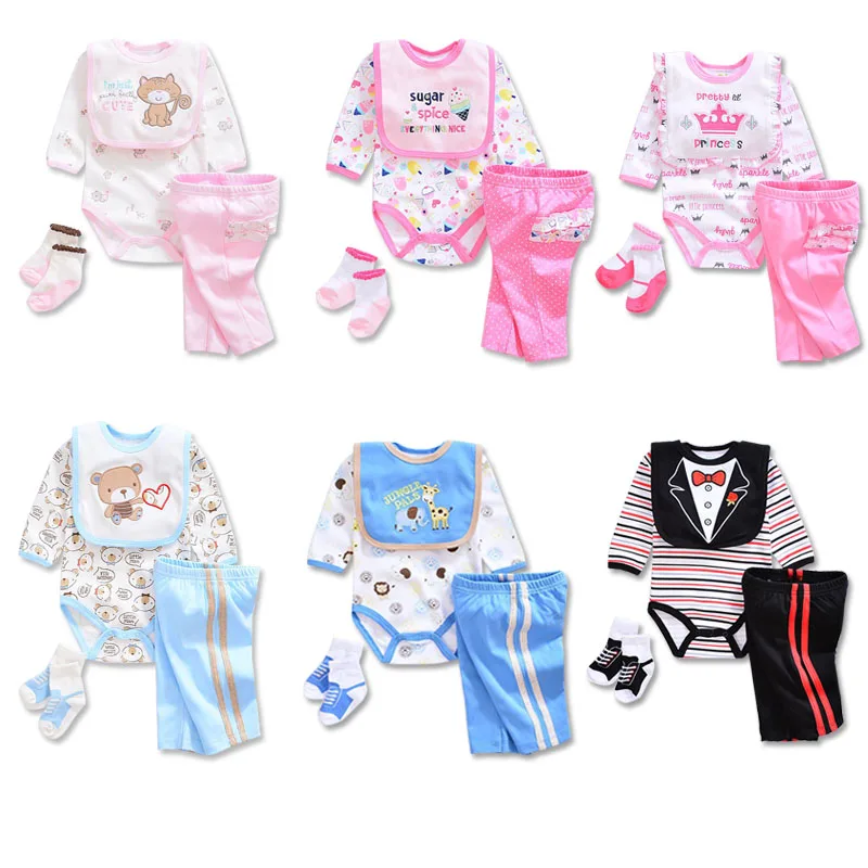 2017 baby Boy’s girls Clothing Set cotton Cartoon baby clothes Newborn Kids 4pcs suits infant rompers+pants+socks+Bib mix