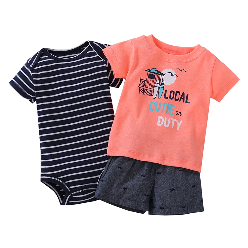 2017 Direct Selling Fashion Full New Model 3-piece For Bebes Bodysuit & Pant Set . Baby Boy Girl Summer Clothes ,baby Clothing