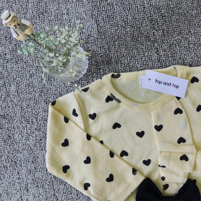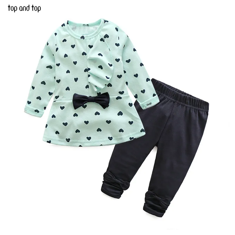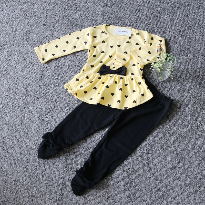 2017 New Baby Girl Set Heart-shaped Print Bow Cute 2PCS Kid Set T shirt + Pants Cute Princess Kids Clothing Set Newborn Clothing