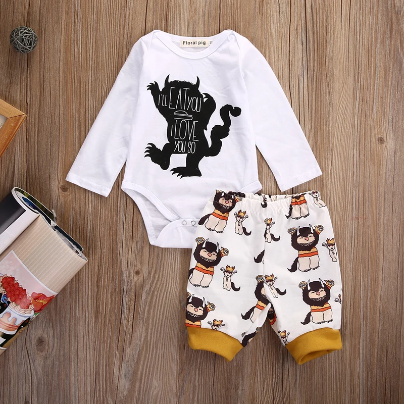 2PCS Newborn Baby Boy Girls Monster Outfits Set