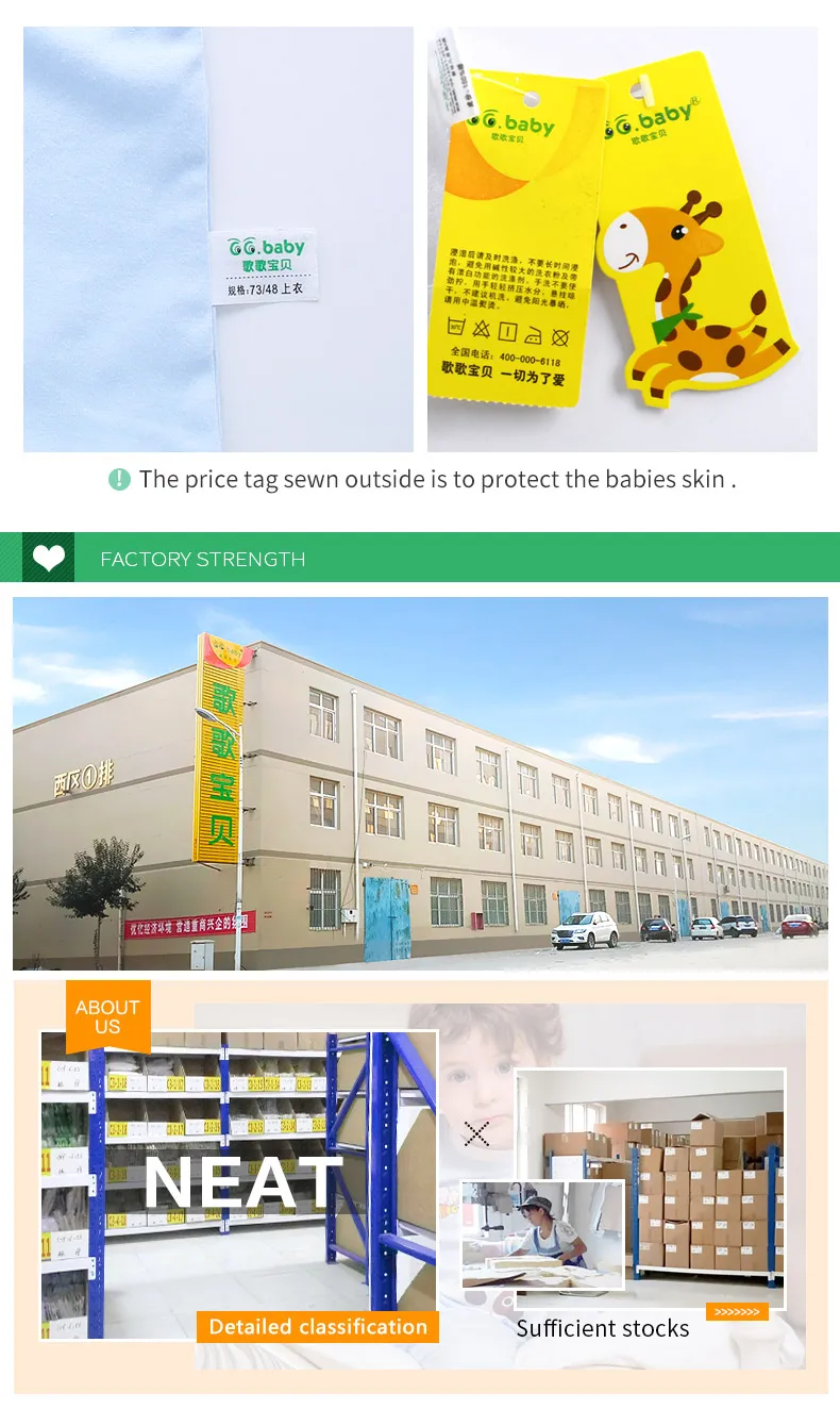 Note please: The label sewn outside is to protect the baby skin! baby boy clothing set baby girl clothes factory show