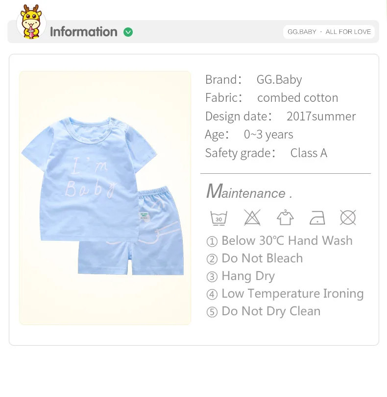 baby boy clothing set baby girl clothes parameter display
