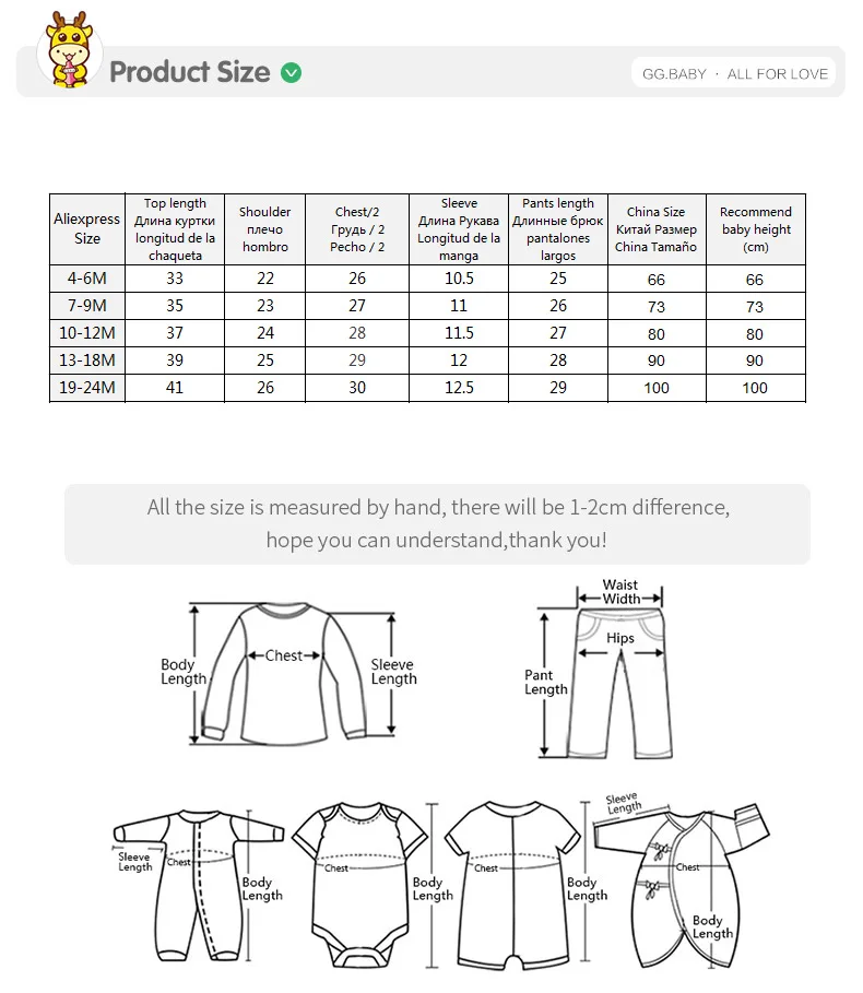 4-6momths —– Pants length 25cm 7-9momths —– Pants length 26cm 10-12momths —– Pants length 27cm 13-18months——-Pants length 28cm 19-27months——-Pants length 29cm baby boy clothing set baby girl clothes size display
