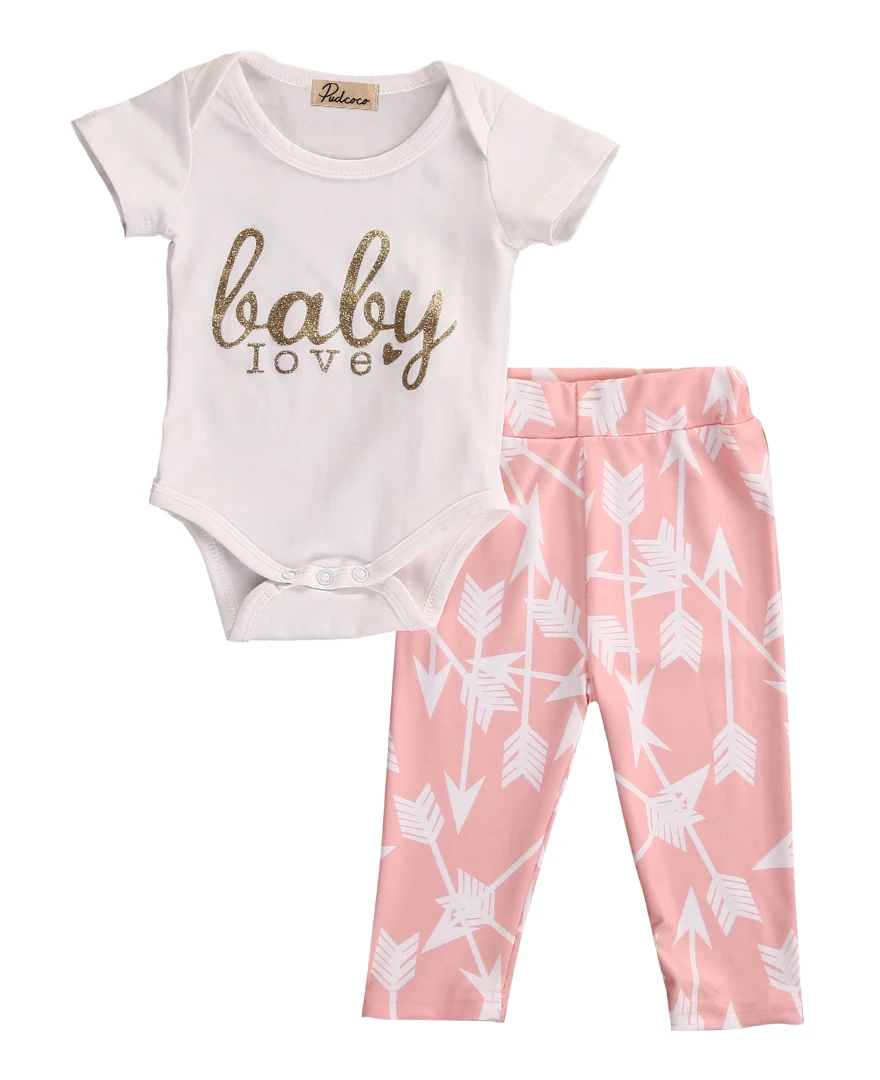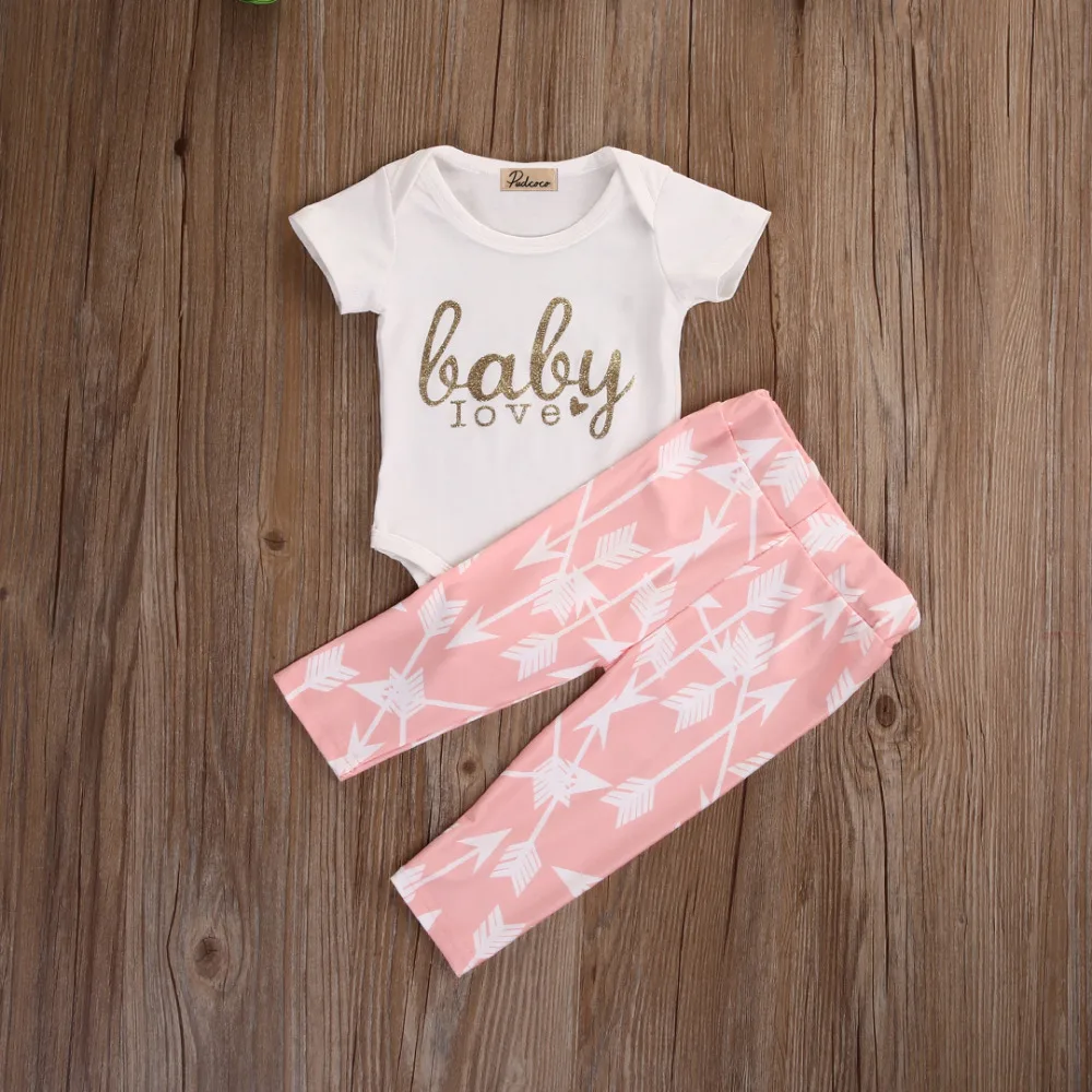 Newest Newborn Baby Rompers Arrow Pants 2Pcs Outfits !! High quality and Brand new 100% Main Color: AS The Picture New in Fashion Material: Cotton Size Chart: