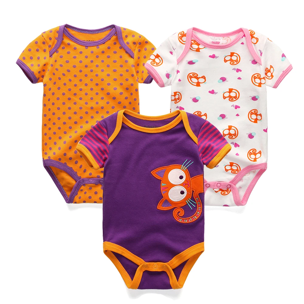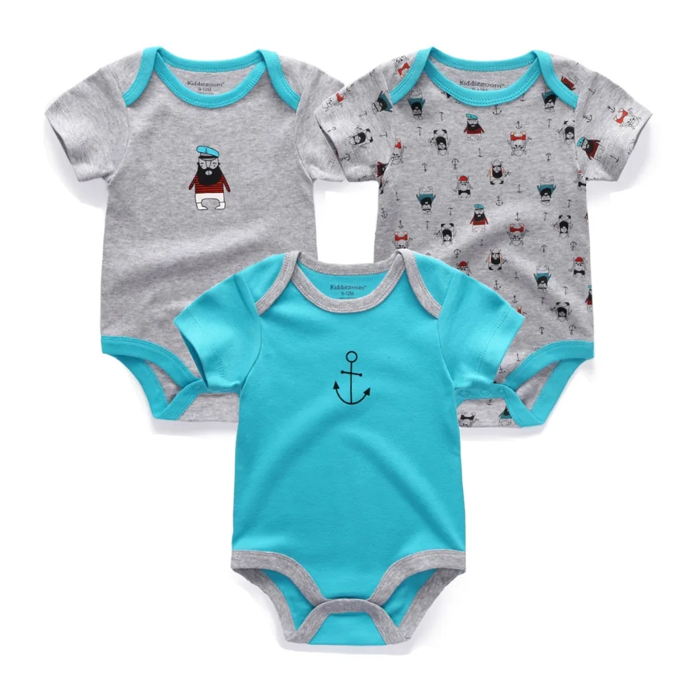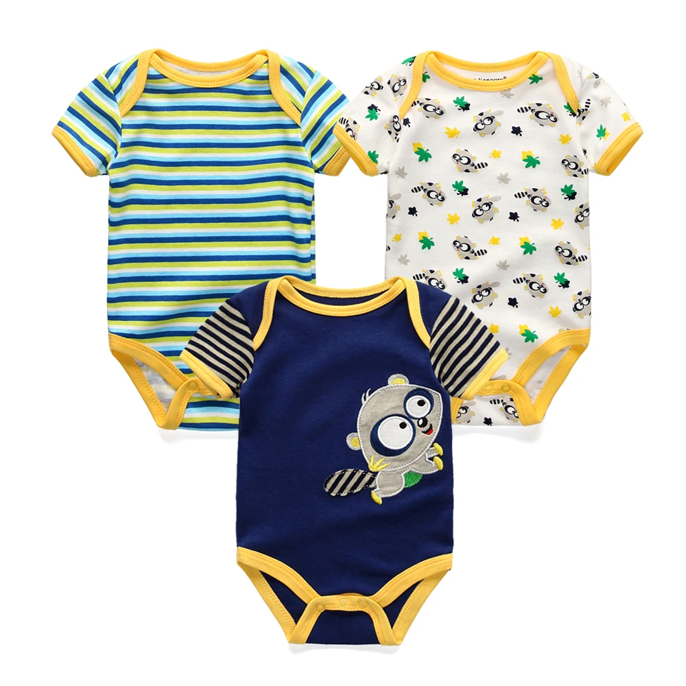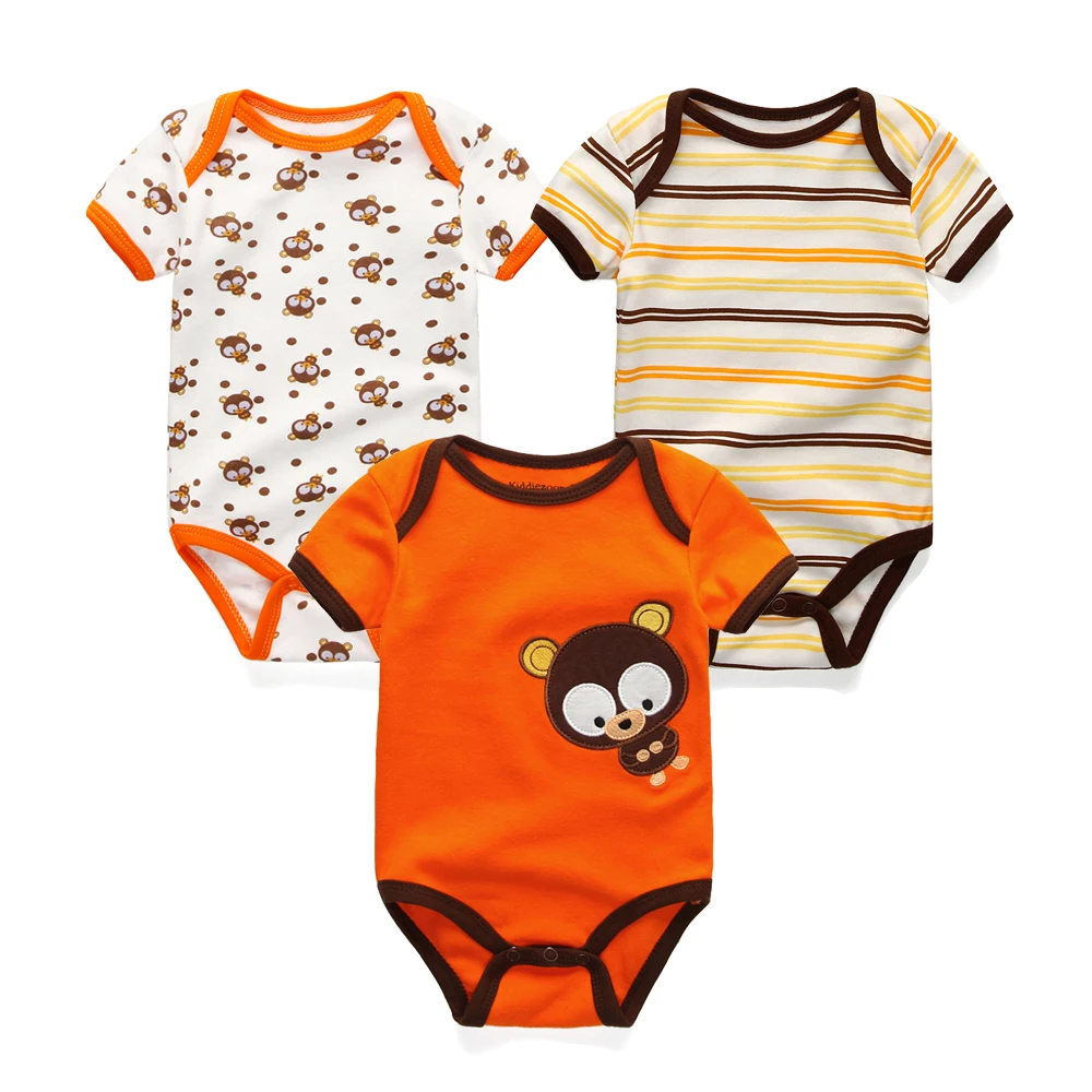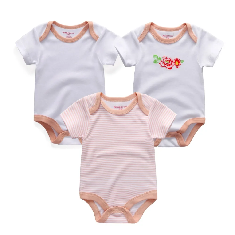 3PCS Kiddiezoom Brand Baby Bodysuits Cotton Baby Girls Boy Clothing Short Sleeves O-Neck Newborn Baby Clothes
