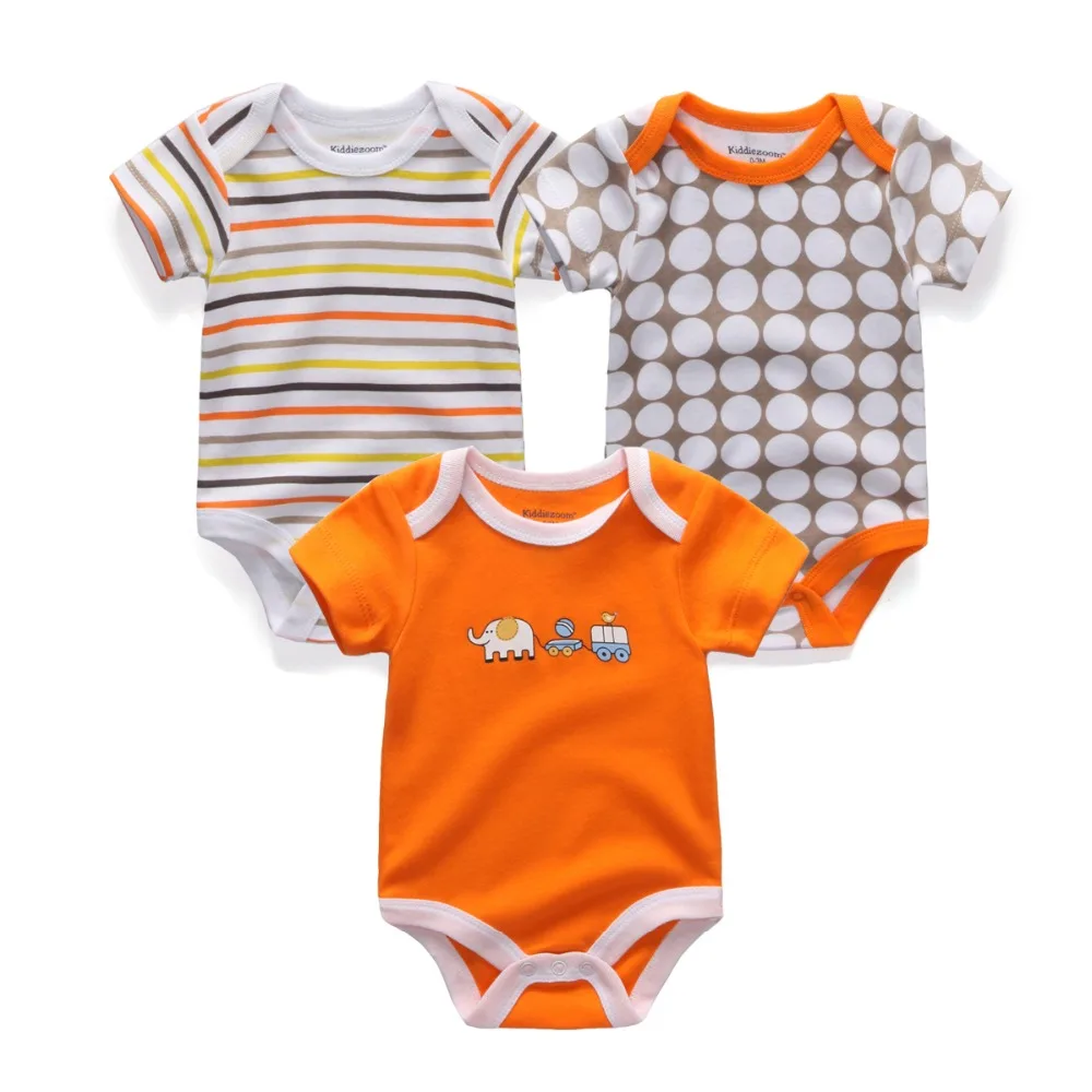 3PCS Kiddiezoom Brand Baby Bodysuits Cotton Baby Girls Boy Clothing Short Sleeves O-Neck Newborn Baby Clothes