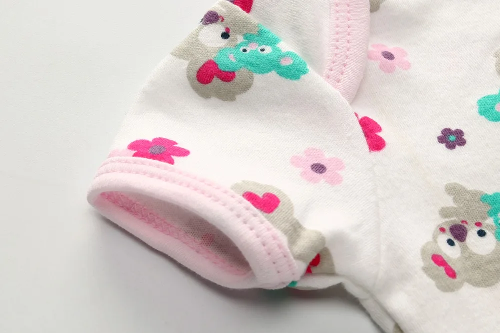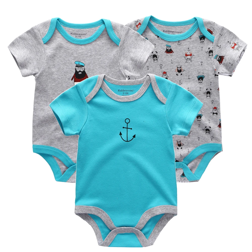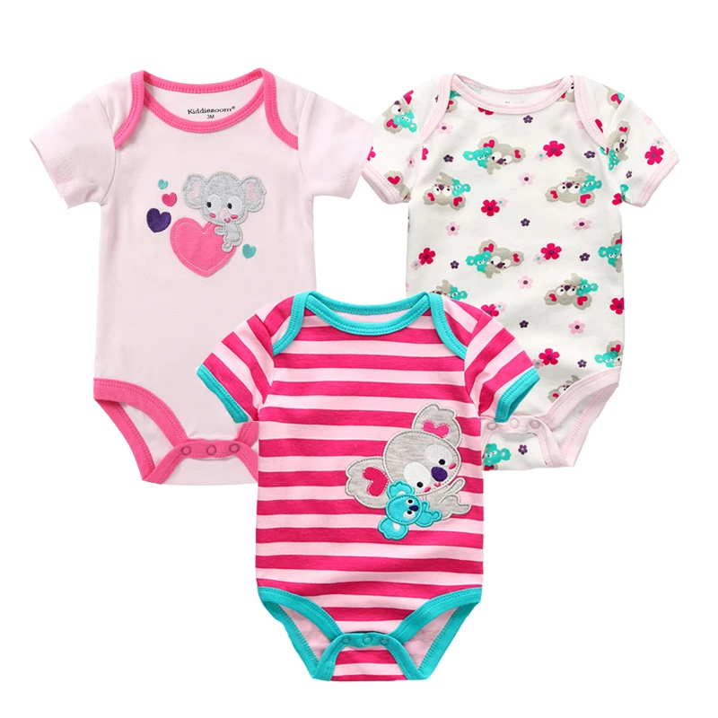3PCS Newborn Baby Rompers Unisex Infant Clothes Cotton Short Sleeves Baby Boy Girl Clothing Cute Cartoon O-Neck Striped 0-9M