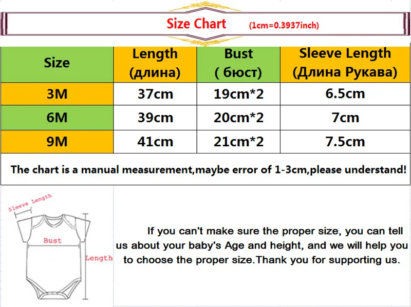 Thank you for browsing our shop. Please provide your 1:full name and detail address,house number, 2:the correct zip number and phone number. We will ship the parcel as soon as we receive your payment. We are direct manufacturer, so we can provide you high quality clothing with the best price and service. Measurement chart is only for your reference. Size table,there may be 1-3cm error. (1 inch=2.54cm) If your measurement is floating between two sizes, I advise you to choose the larger one. Hope you have a pleasant shopping experience More lovely items, please visit our store:https://www.aliexpress.com/store/1379064 New Arrival !!! 3Pieces/lot Baby Body Baby Bodysuit Cotton Short Sleeve Clothes Baby Girl Boy Bodysuits Infantil Baby Clothing Feature: [Size]:0-3M=3M,3-6M(=6M),6-9M(=9M) [Color]:car,Giraffe, bear, fox, stripes, bag, lipstick, leopard, monkey, elephant, cake,fun [Sleeve]:short sleeve [Material]: cotton [Package]:3Pcs/lot