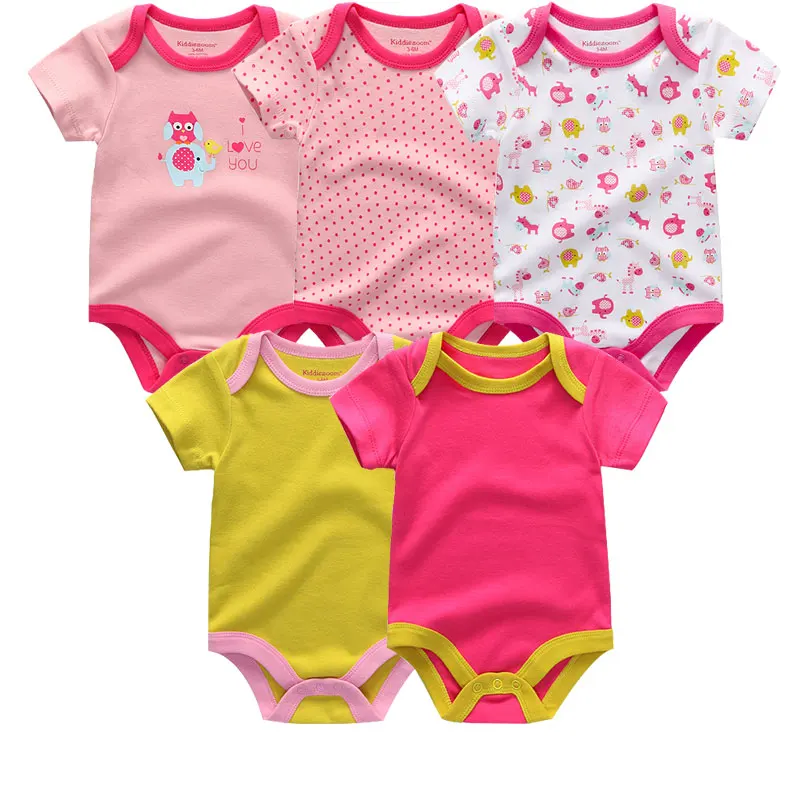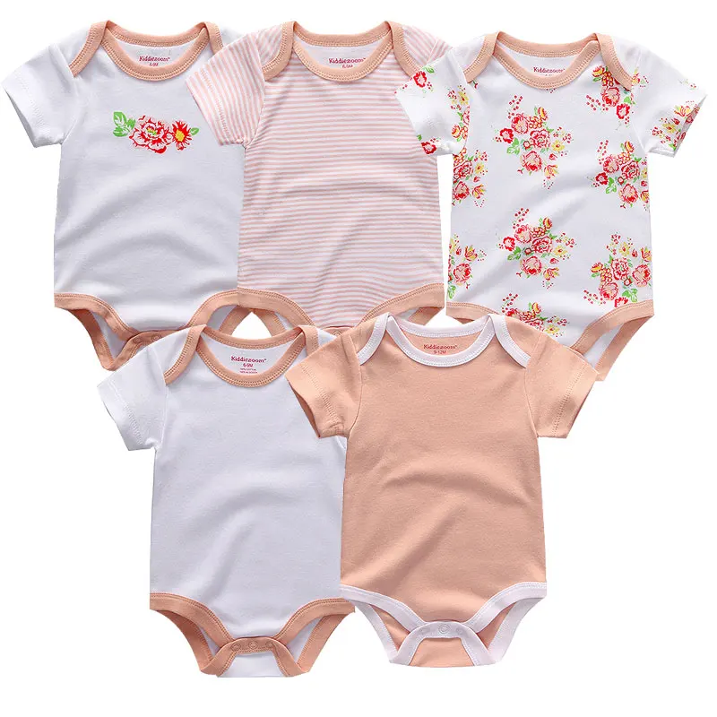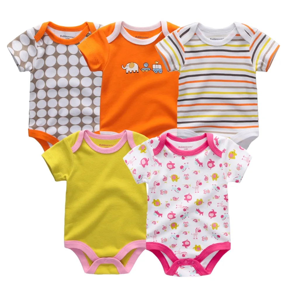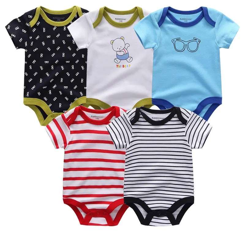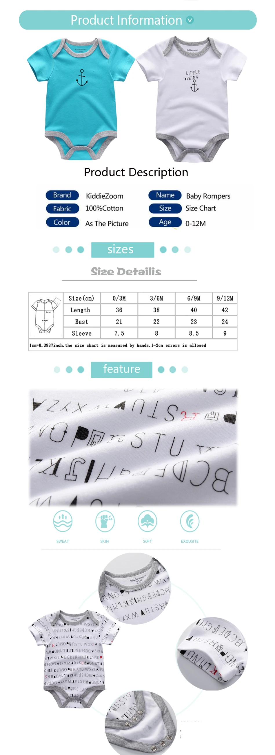 5PCS/LOT Unisex Top Quality Baby Rompers Short Sleeve Cottom O-Neck 0-12M Novel Newborn Boys&Girls Roupas de bebe Baby Clothes
