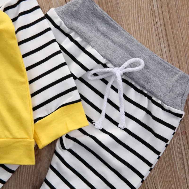 Autumn Newborn Infant Baby Boys Girls Clothes Sets Long Sleeved Hooded Jacket + Striped Pants 2PCS Baby Clothes Suit 0-24 Months