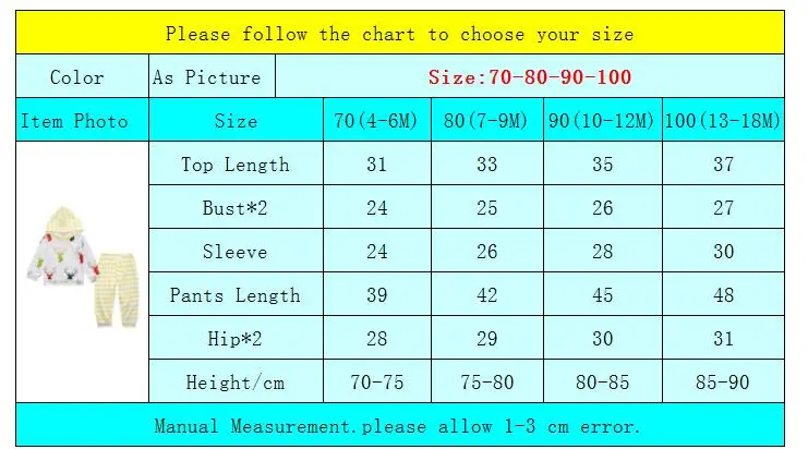 Kids of the same age may differ in height and shape. Please follow the size chart (esp. the suggested height) to choose a suitable size. If your baby’s a bit chubby, please take a size bigger. Thank you!