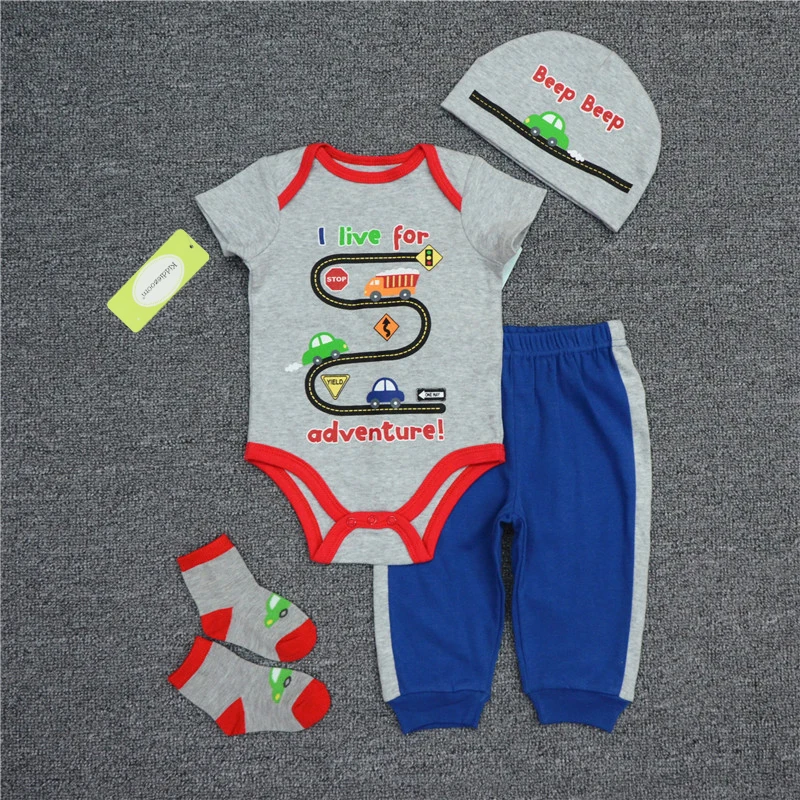 Baby Clothing Sets 2017 New Newborn Boy Girl Clothes Set Cotton Long Sleeves Babywear Hat+T-shirt+Pants+Socks Infant Outfit