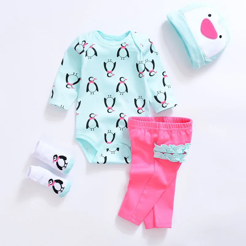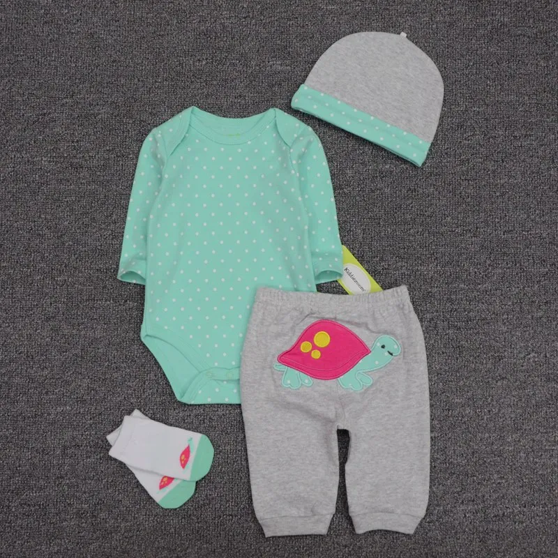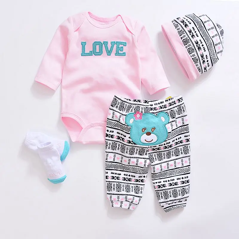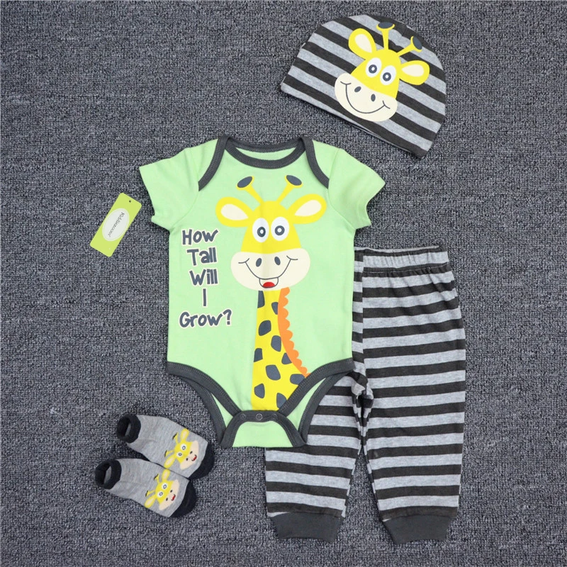 Baby Clothing Sets 2017 New Newborn Boy Girl Clothes Set Cotton Long Sleeves Babywear Hat+T-shirt+Pants+Socks Infant Outfit