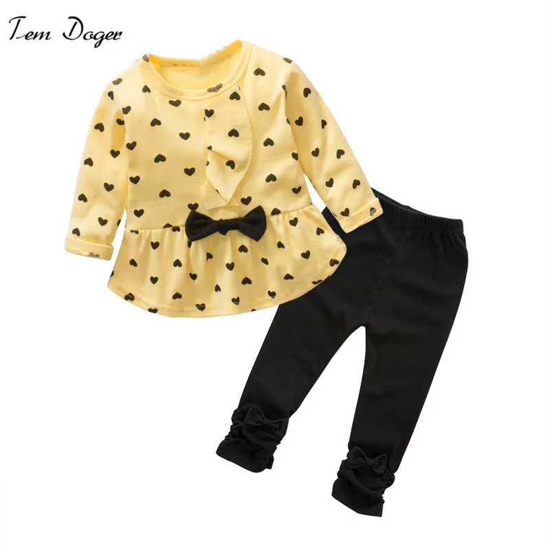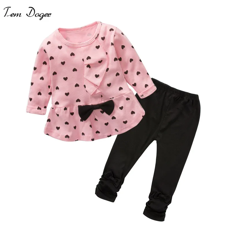 Baby Girls Spring Autumn Clothing Sets Bowknot Lovely T-Shirt+ Pants 2pcs/set Infant Clothes Suits