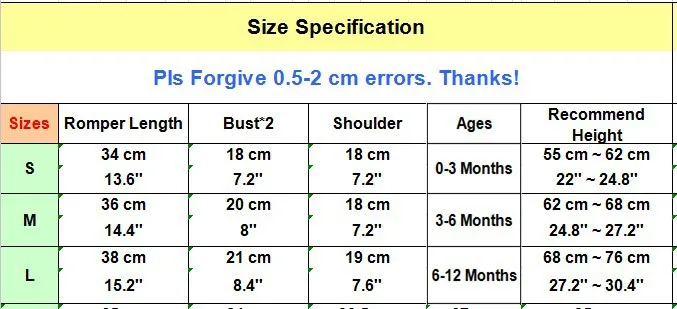 Size: S(0-3M), M(4-6M), L(10-12M) Suit for 0-1 years baby (Only for reference)