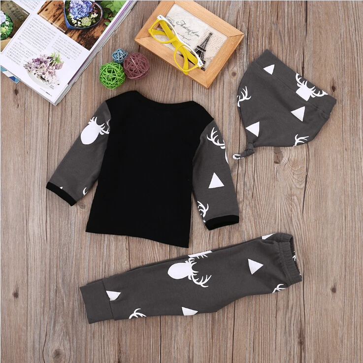 Cute Newborn Baby Girl Boy Clothes Deer Tops T-shirt Tops Long Sleeve + Pants Casual Hat Cap 3pcs Outfits Set Autumn