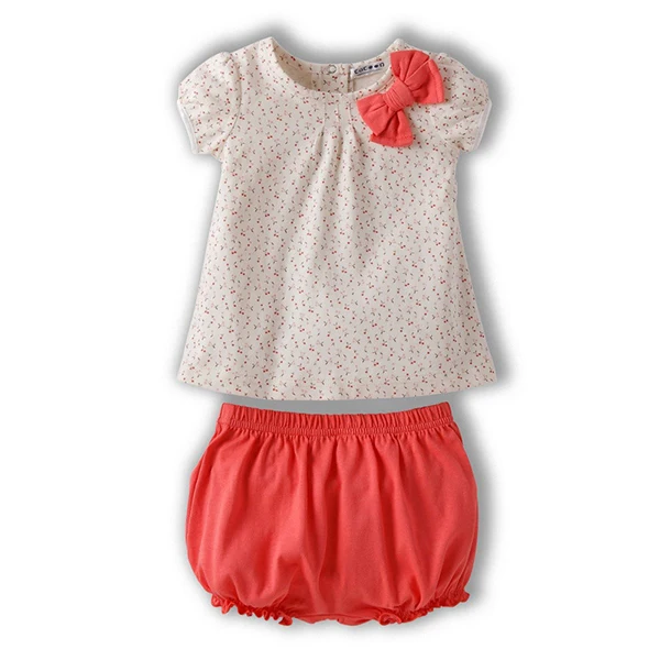Kids Baby Girls Cherry Dots T-shirt Tops+Short Pants 2Pcs Bow Cotton Outfits 1-3Y