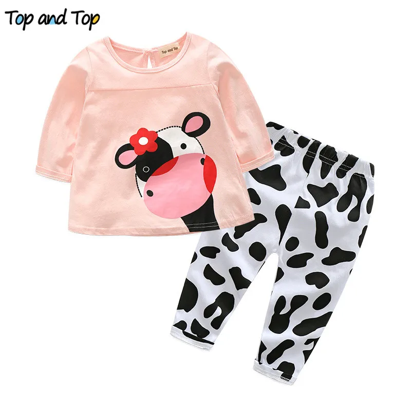 high quality winter hot sale baby girl clothes casual long-sleeved T-shirt+Pants suit Tracksuit the cow suit of the girls