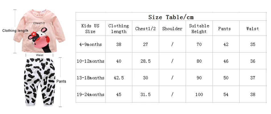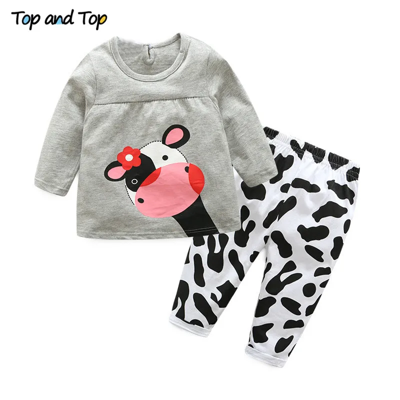 spring autumn hot sale baby girl clothes casual long-sleeved T-shirt+Pants suit Tracksuit the cow suit of the girls