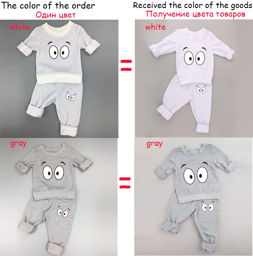 warm Tips On the After-sales service: If you receive the goods,the product has any questions or not satisfied,trouble you first do not open the dispute,please be sure to contact us,we will help you solve the problem in time ,because the platform will open directly after the dispute,Resulting in processing time greatly extended,and if we follow the method to solve the problem,the time will be greatly reduced,we are honest sellers,we believe that our services will make you satisfied,hoping to get your understanding and support! About the material : baby suit material with breathable comfortable terry cloth, clothes cuffs and many other places with a goodshrinkage thread cloth;suitable for spring/summer use On the product of the color difference: due to the different light,different backgrounds,different display displays will lead to some color differences,in order to allow customers to more carefully understand us Of the product,we have done some color difference contrast,once again shows:our white suit is pure white,gray suit in different light there are some differences,and ultimately to receive the color of the goods as the standard,we will ensure that the product quality and Service,the color requirements of very high buyers,it is recommended to buy carefully,thank you!