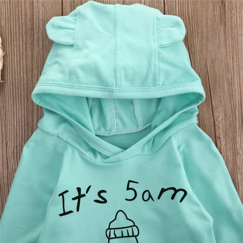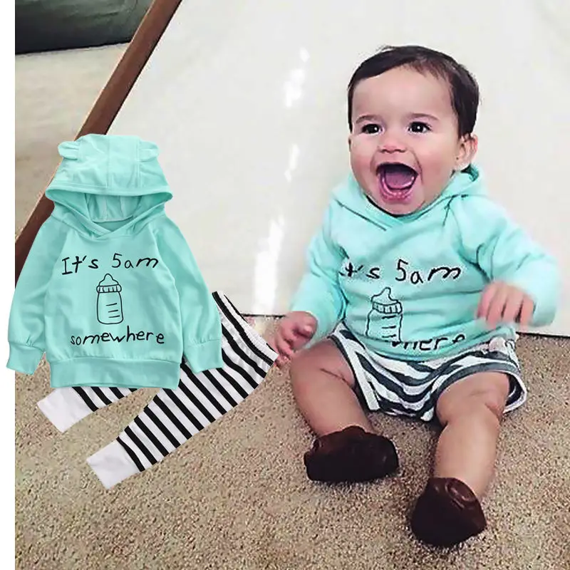 It’s 5am Somewhere Toddler Baby’s Sets Baby Boy Girls Clothes Sets Cotton Long Sleeve Ears Hooded Tops + Striped Pants Outfit Hello! Welcome to our store! – Quality is the first with best service. customers all are our friends.