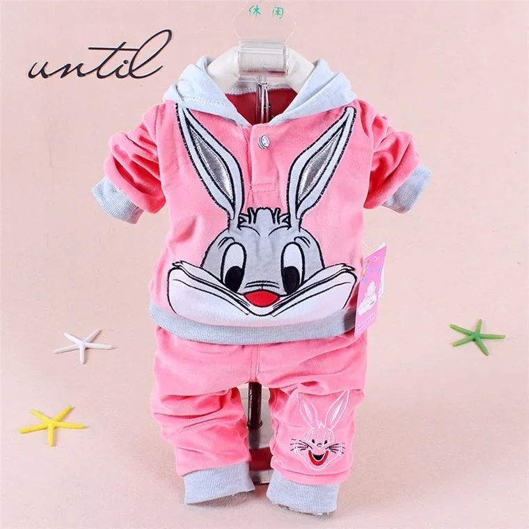 Newborn Baby Girls Clothes Set 2017 New Spring Baby Boys Clothing Suit Rabbit Velvet Long Sleeve Hoodie+Pant Outfit Kids Clothes