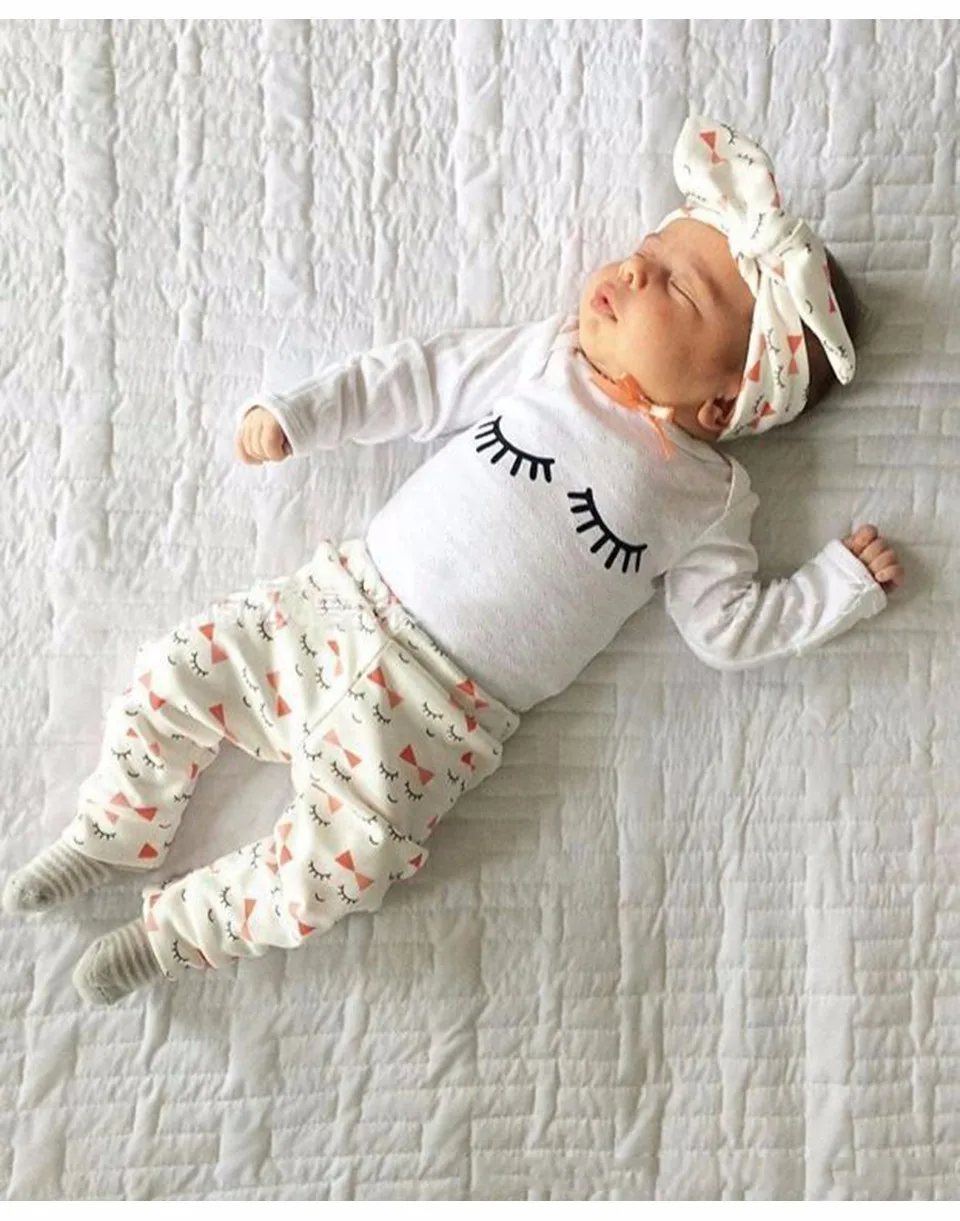 Cute Eyelash Baby Girl Clothes Set 2016 Cotton Clothing Suit For Newborn Baby Outfits Tops + Pant + Headband 3Pcs /sets
