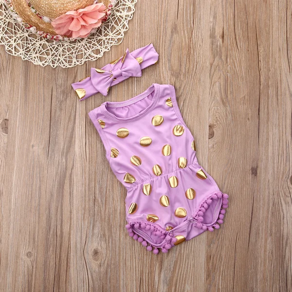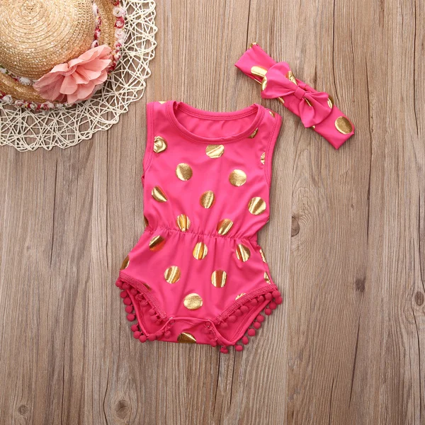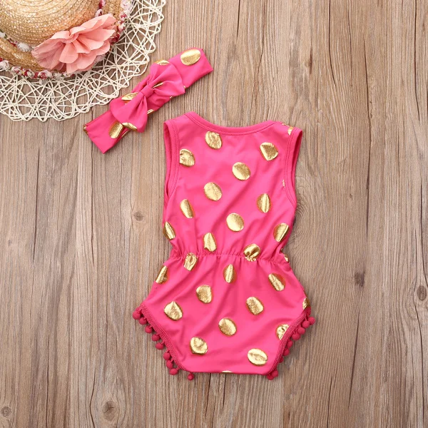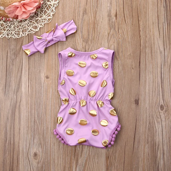 Pretty Baby Rompers Sets Newborn Baby Girl Clothes Polka Dot Romper Jumpsuit + Headbanf Children Girls Sunsuit Outfits Suits