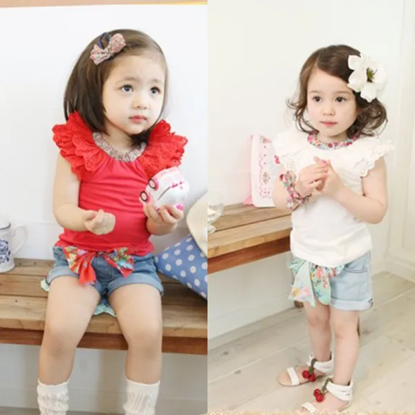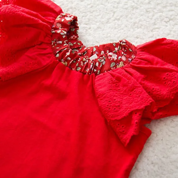 Kids Baby Girls Cute Floral Collar T-shirts Short Sleeve Tops Blouse Shirts 0-2Y