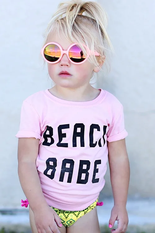 2017 Letter Baby T-Shirt Summer Newborn Baby Girls Toddler beach babe Letter Short Sleeve T-shirt Top Tee Outfits Clothes