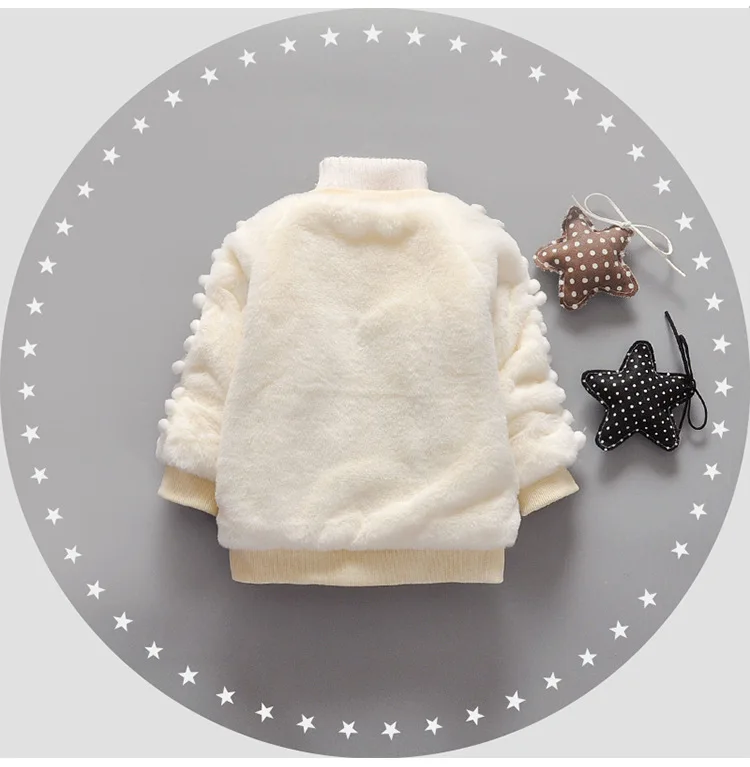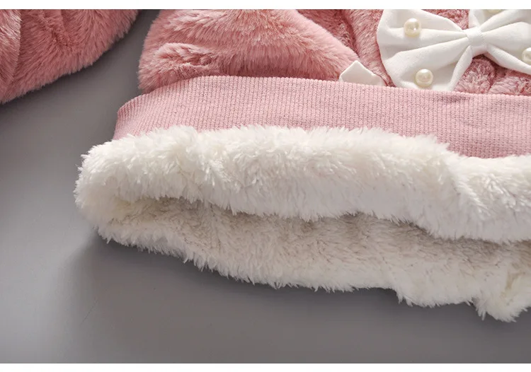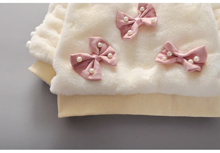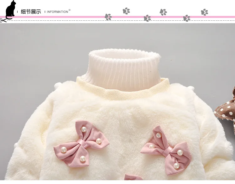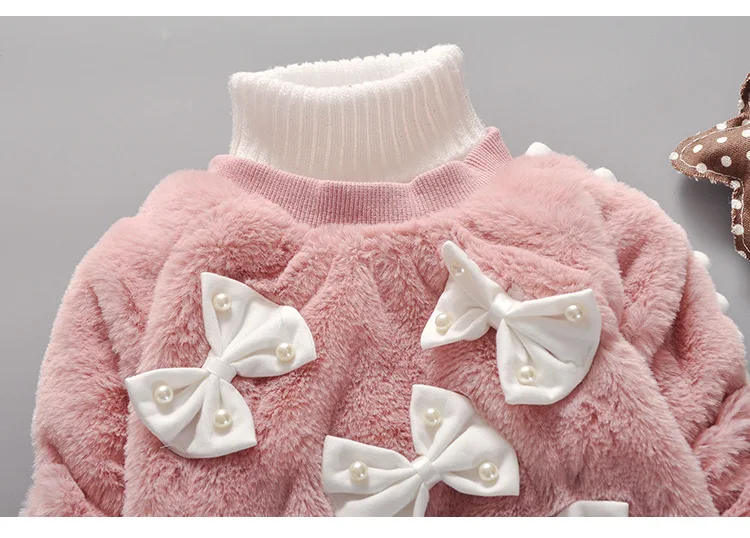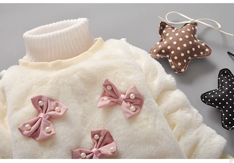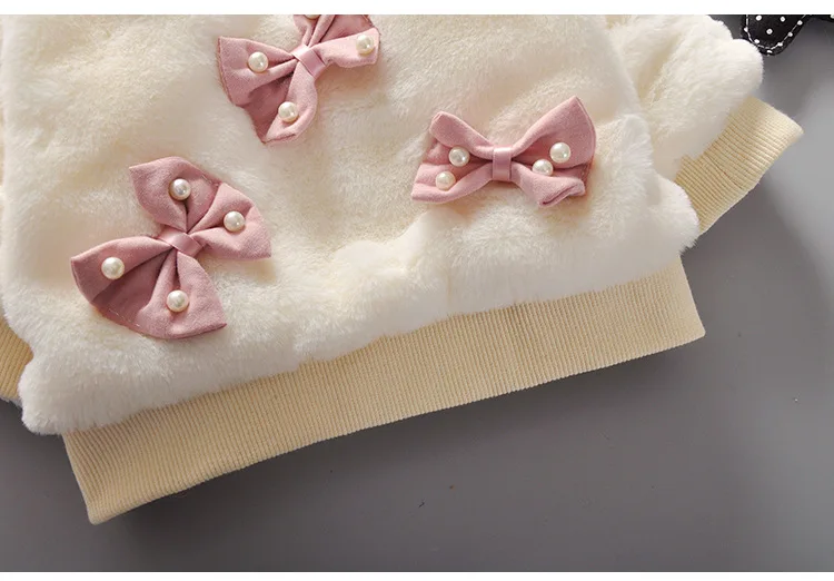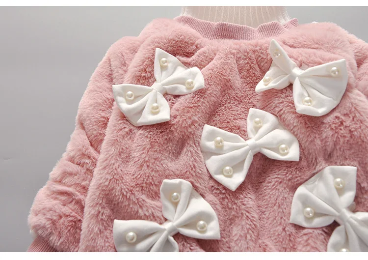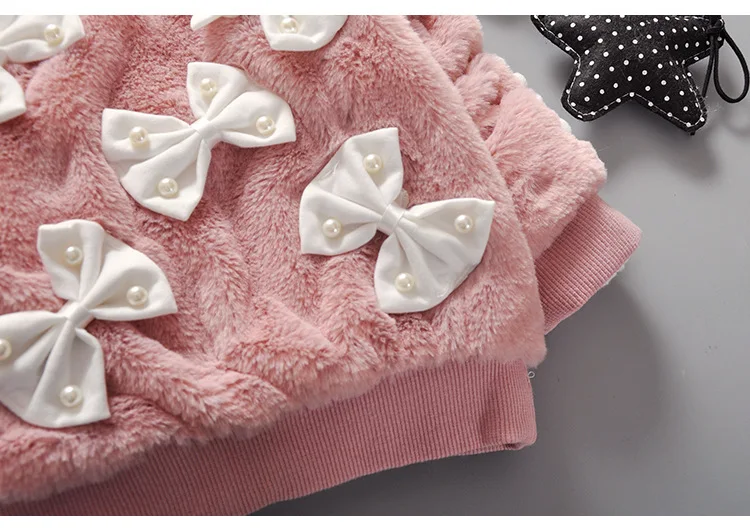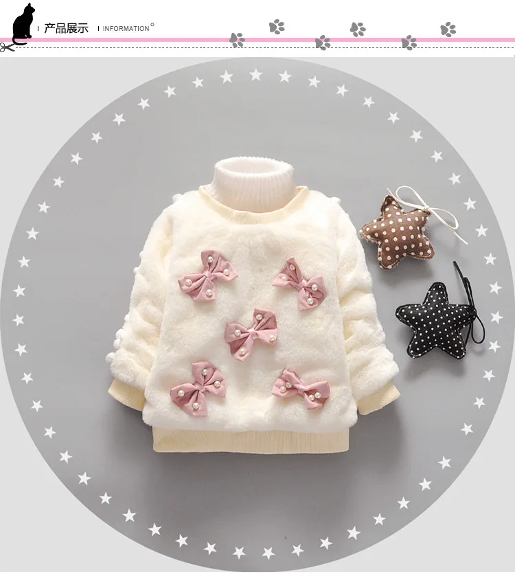 winter baby girls five pearl butterfly knot thicking coat sweet bow Plus velvet T-shirt