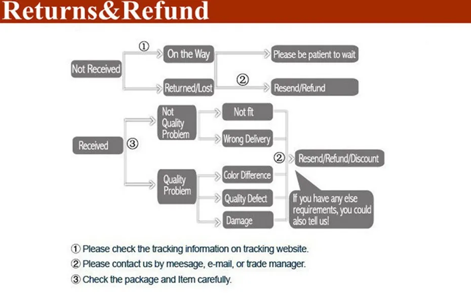 1. If you are satisfied with our products and services, please leave your positive feedback and 5 stars .Positive (5 stars) is very important for us, please think twice before leave us feedback. 2. If you don’t satisfied with our products, please feel free to contact us before you leave negative (1-3 stars) feedback or do the detailed rating. We will try our best to solve your problem.