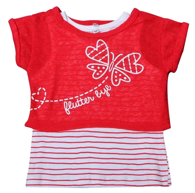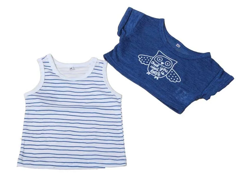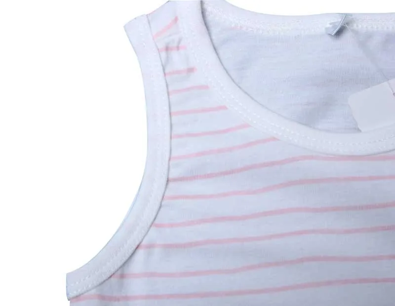 This New Design Hot Selling Unisex baby T-Shirt Set,two pieces summer baby girl set, we have three colors for you to choose, striped vest with a short T- shirt outside, beautiful but elegant. The striped vest is made of Pure Cotton which is breathable, light and comfortable. The material of the outside T- shirt is stretchable, breathable, it is a perfect practical and beautiful combination.