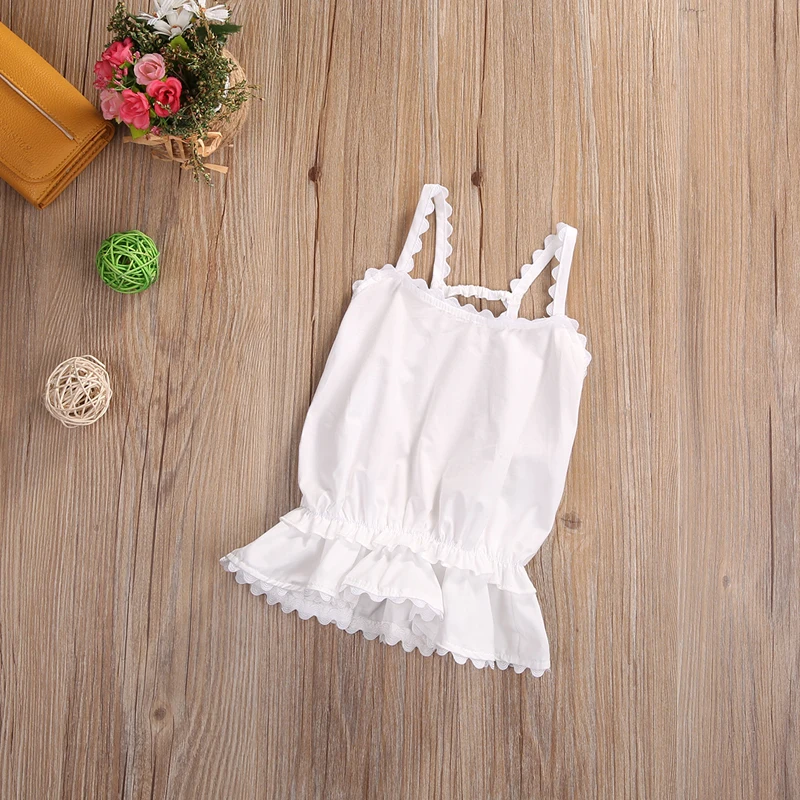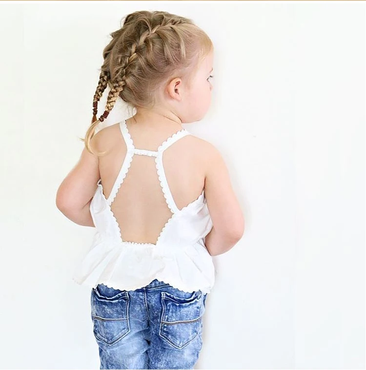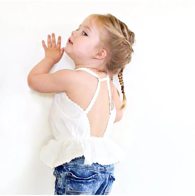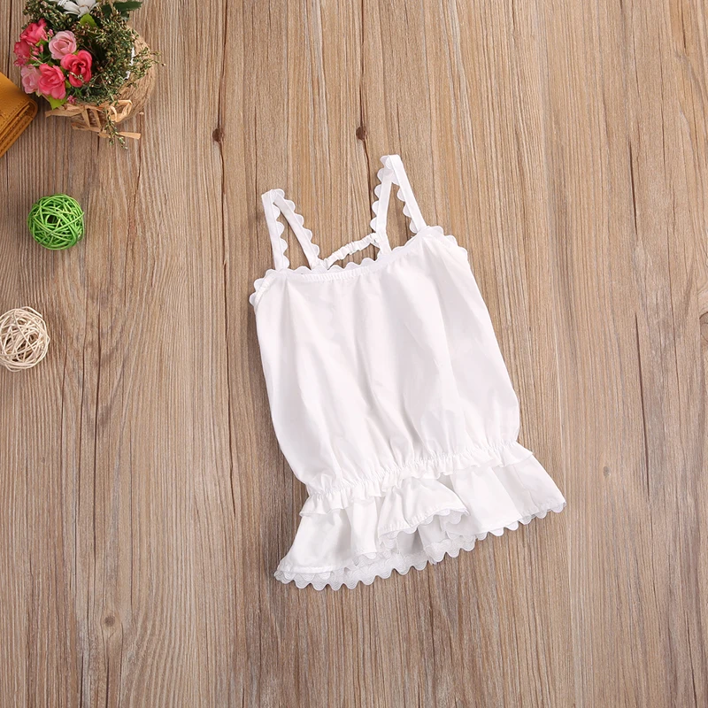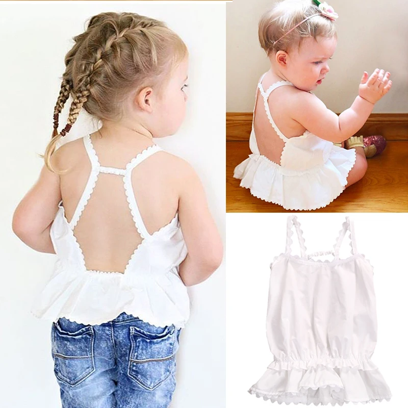 Cute Toddler Infant Baby Girl Clothes Tops Halter Ruffles Sleeveless White Lace Vest Backless T-shirt Top Baby Girls