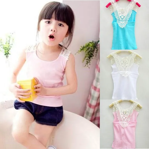 1PC Kids Girls Crochet Hollow Out Floral Tank Tee Shirts Vest Candy Color 0-3Y
