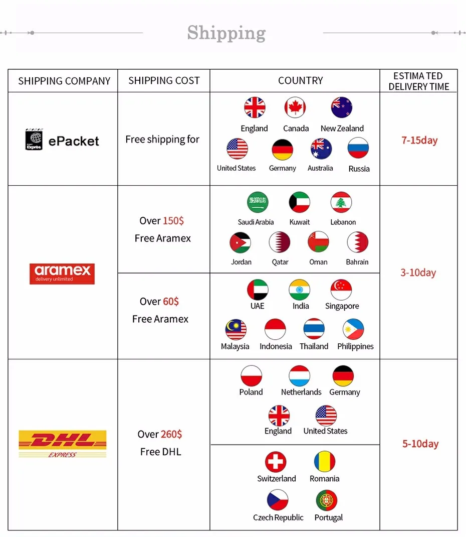 For wholesale,we will offer discount or free express shipping which only takes 3-7 days to arrive.