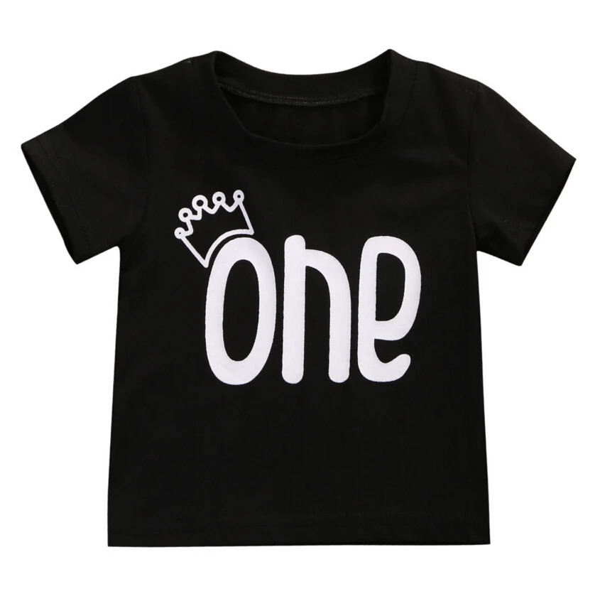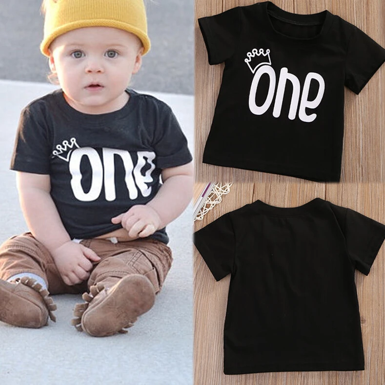 Unisex Baby Boys Girls Clothes Short Sleeve Black Letter T Shirt Short Sleeve Cotton Tees Tops T-Shirts Clothing 0-24M
