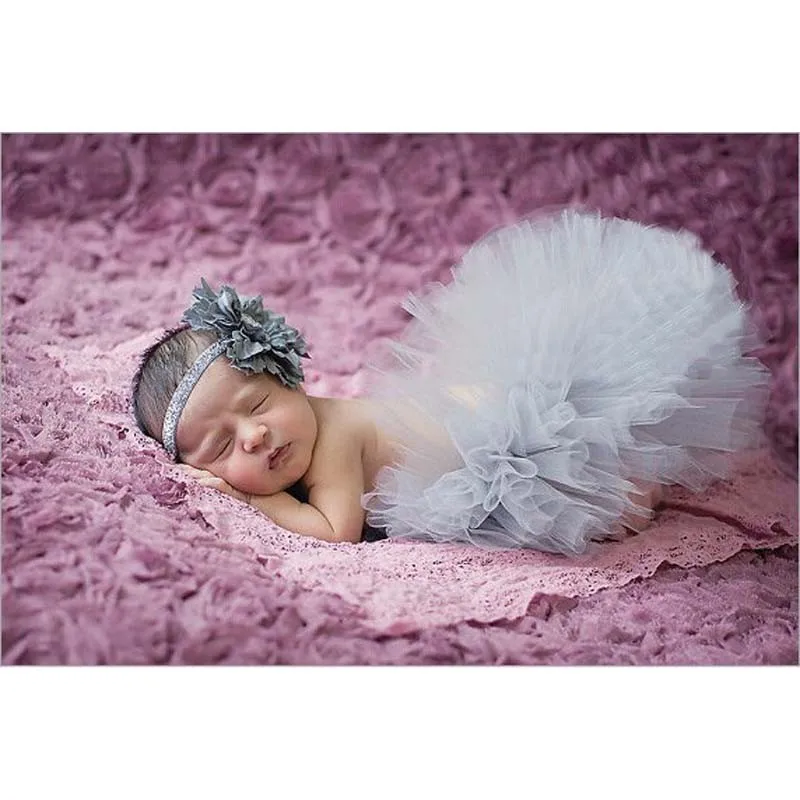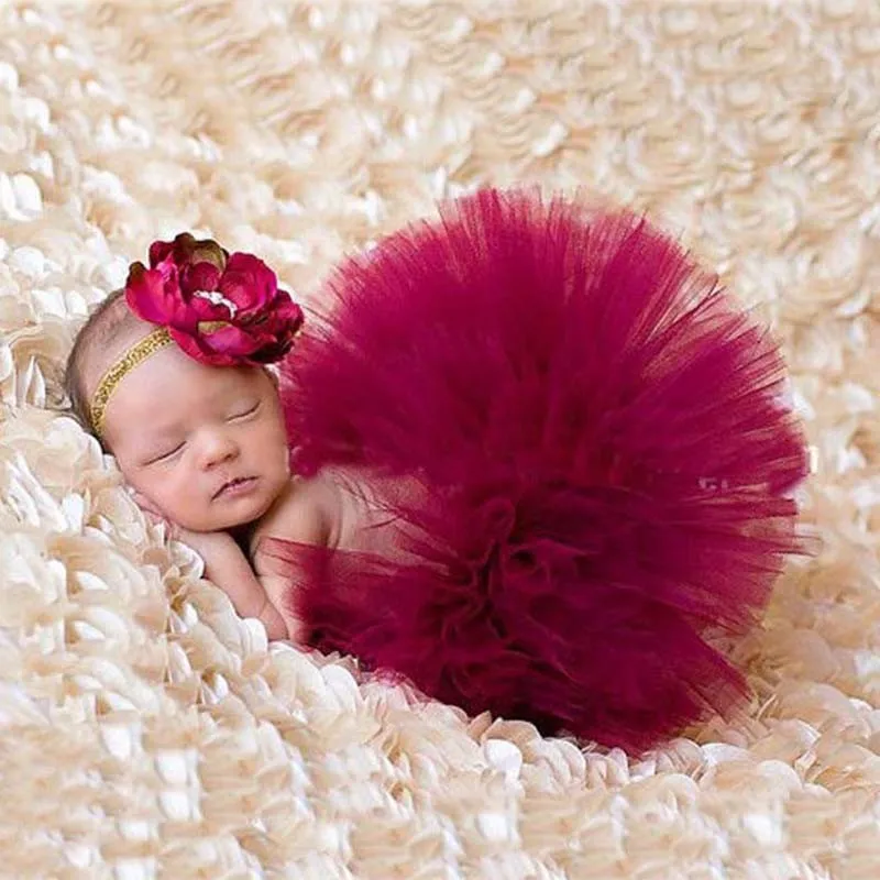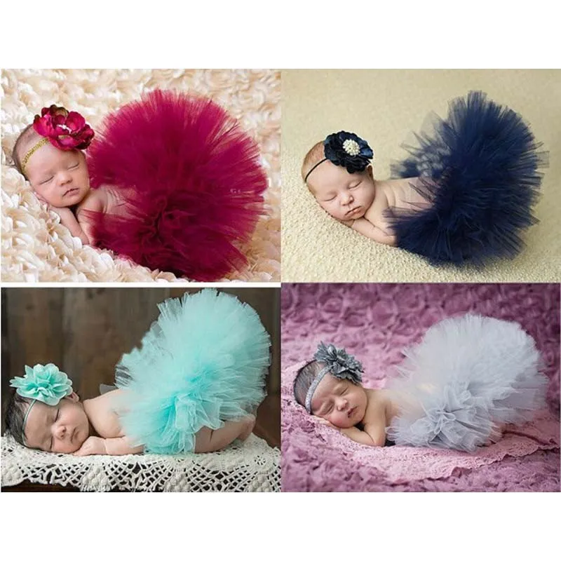 Product name: Newborn Tutu Skirt With Matching Flower Headband Stunning Newborn Photo Prop Girl Tutu Skirt Color: 4 Designs for choosing suitable age:0-6 months Packing: 1set/OPP bag The model pictures are only for reference.