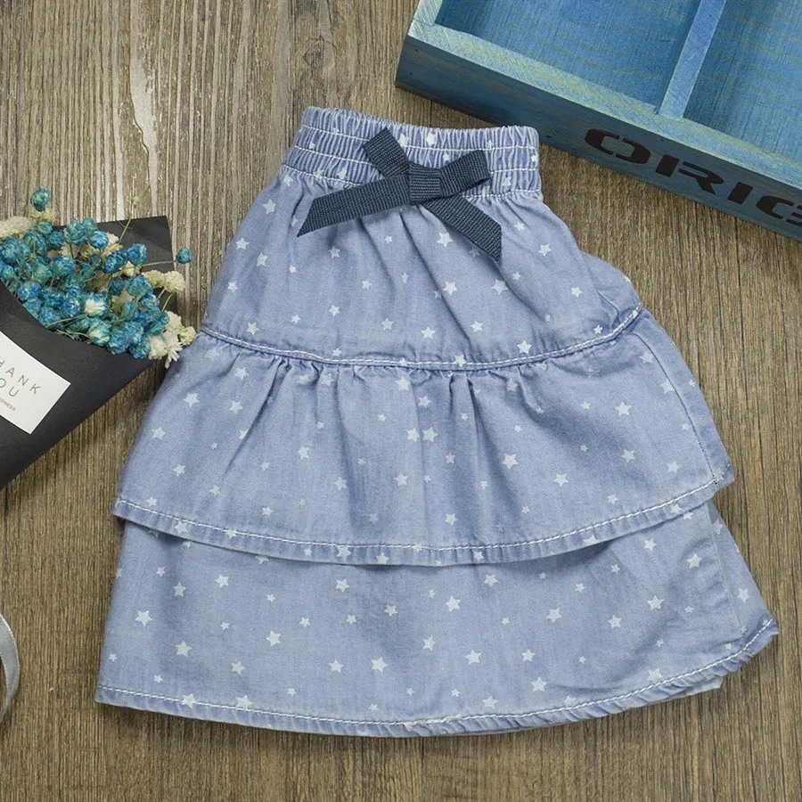 2017 New Arrival Infant Baby Girls Denim Mini Skirt Newborn Elastic Waist Bow All Match A-line Tutu Skirt Star Pattern Clothing