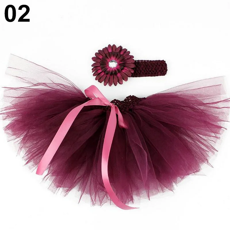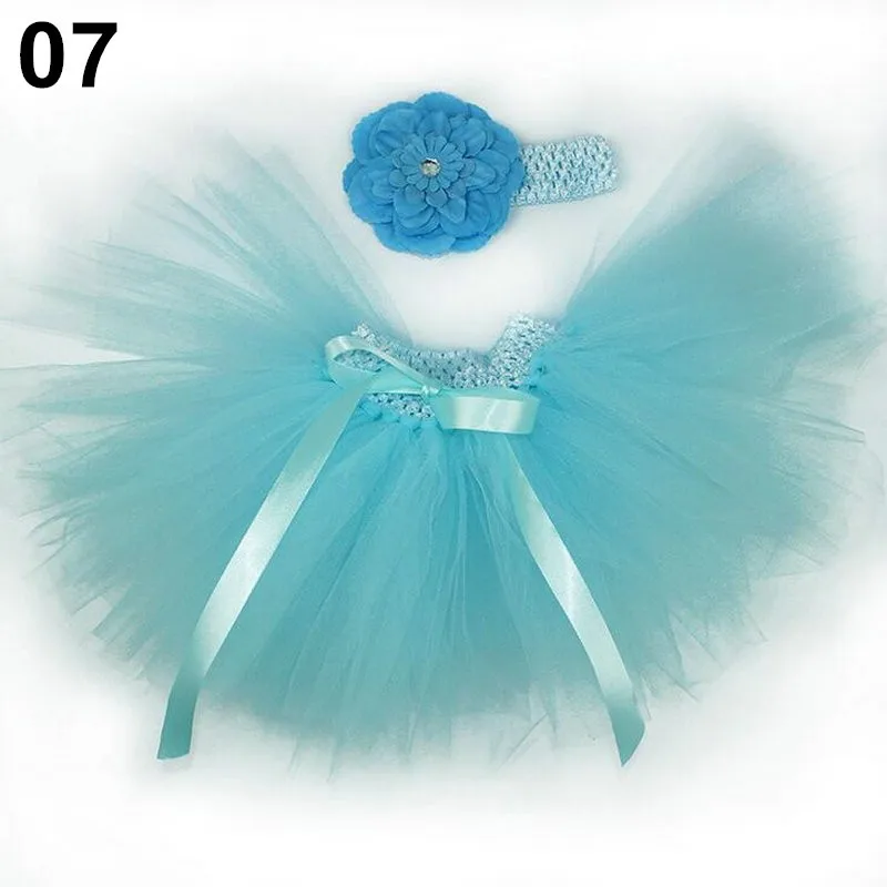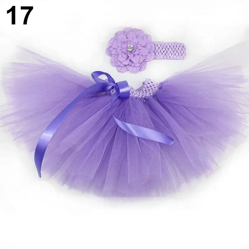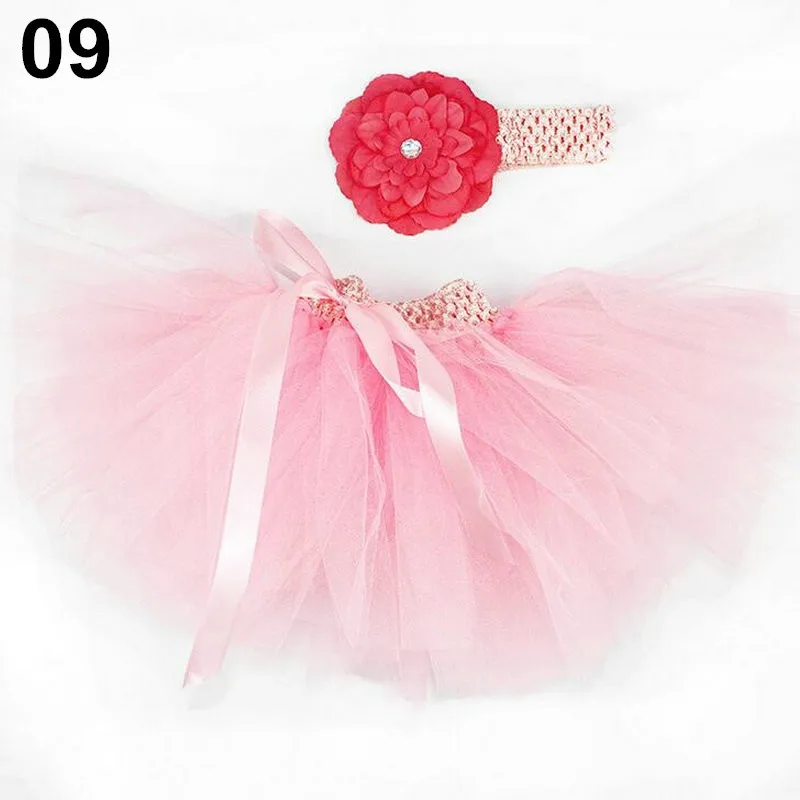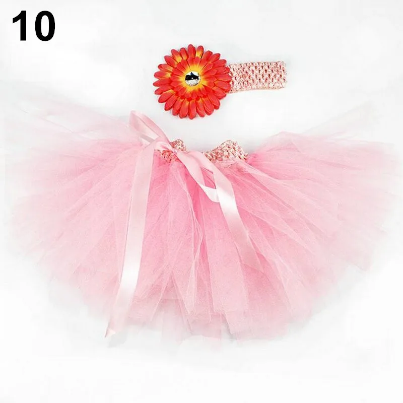 Hot Sales Infants Cute TUTU Skirt 18 Designs Layers Mesh Skirts Infants Girl Newborn Photograph Bow Skirt + Flower Headband