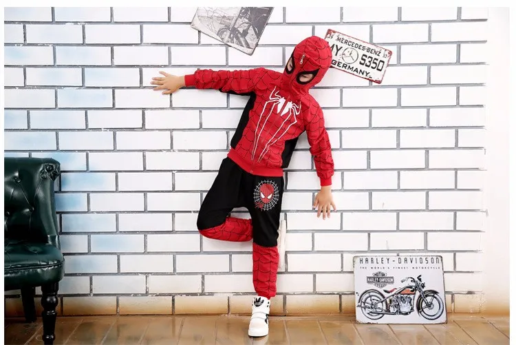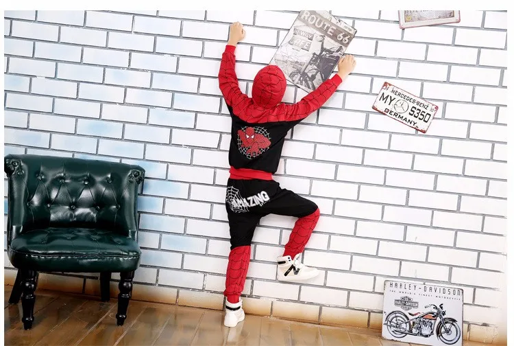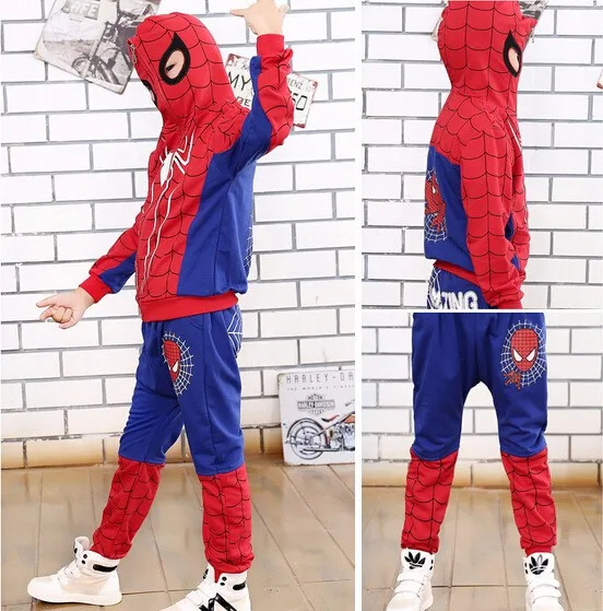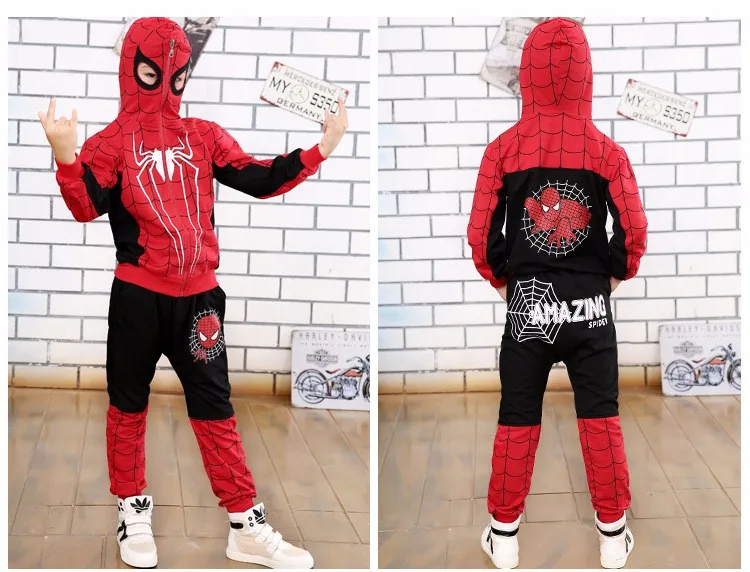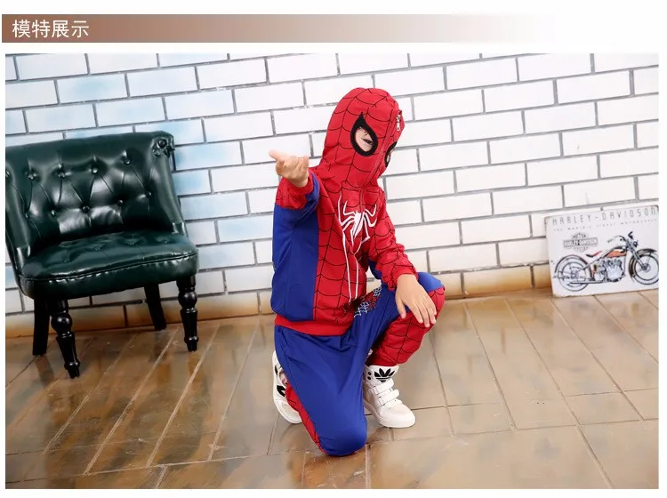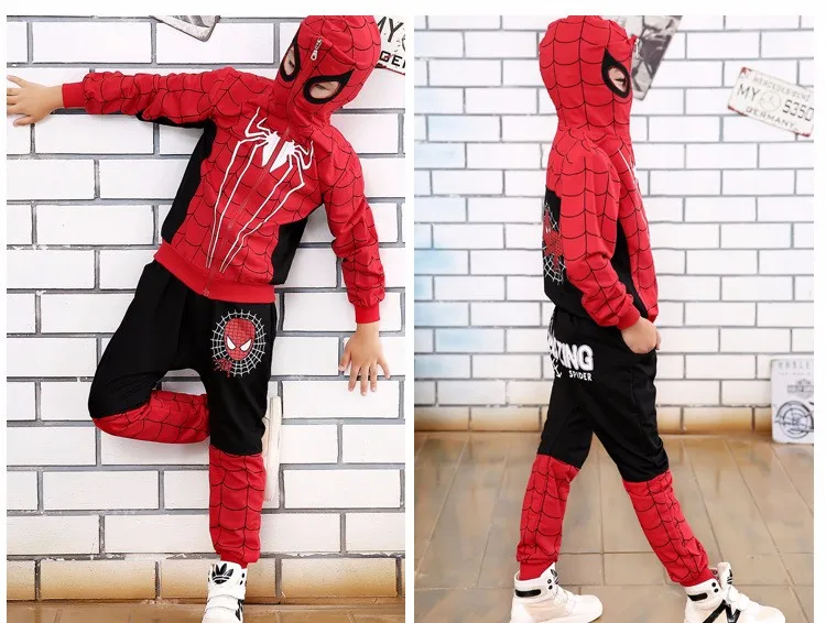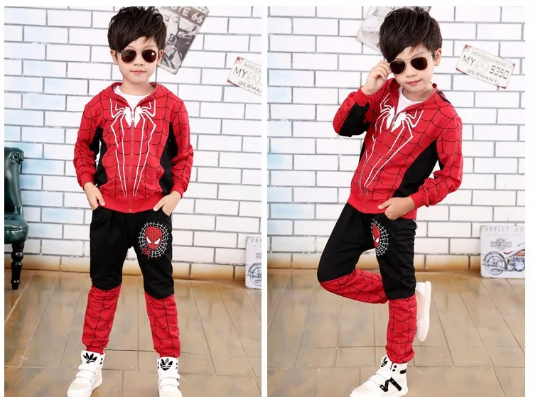 2017 Spring and Autumn Pants + Children Cartoon Hoodie Jackets 2 To 10 Years Child Boys Clothing Set Spiderman Costume for Kids