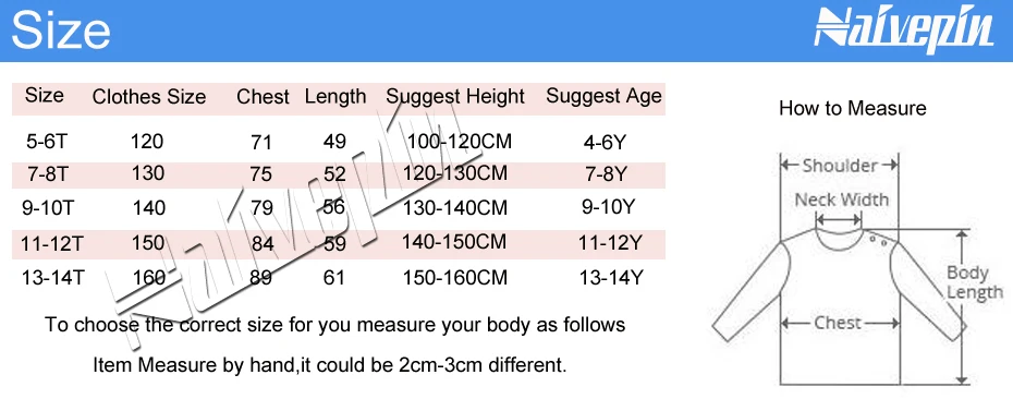 Tag Size 90 100 110 120 130 US Size 2T 3T 4T 6T 8T Length (cm) 37 40 43.8 47 48 Chest (cm) 65 68 70 76 78 Sleeve (cm) 32 36.4 40 43.5 49 Shoulder (cm) 27 28.5 29.5 … Read More