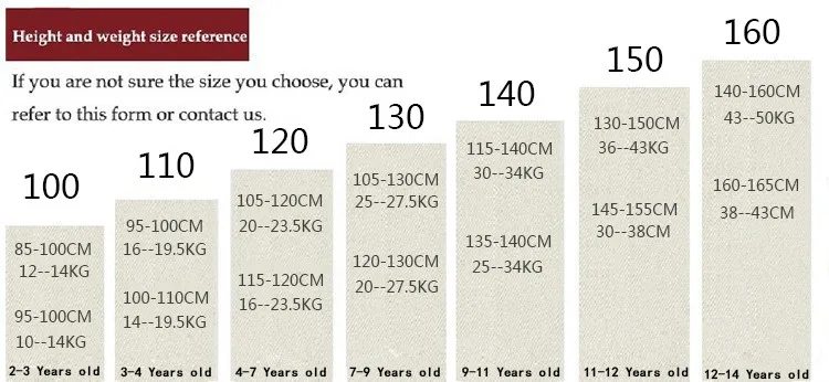 1. we sell Asian Size! about 1-2 size smaller than US/UK/AU/EU,if you are not sure about the size,you can tell us your height(cm) and weight(kg) before you shopping,we will help you choose an appropriate size. We do every size chart below the age,but it’s just a suggestion age.For example,the age of five children, some are 105cm high,some are 110 cm high, so,when you choose size, please refer to your children’s specific height and weight.I hope you have a happy internet shopping. 2. Attention: Please allow 2-3cm differs due to manual measurement. 3. Color: As the result of shooting light,angle and color displays,maybe the color of physical and pictures exists some bias.Goods in kind prevail.