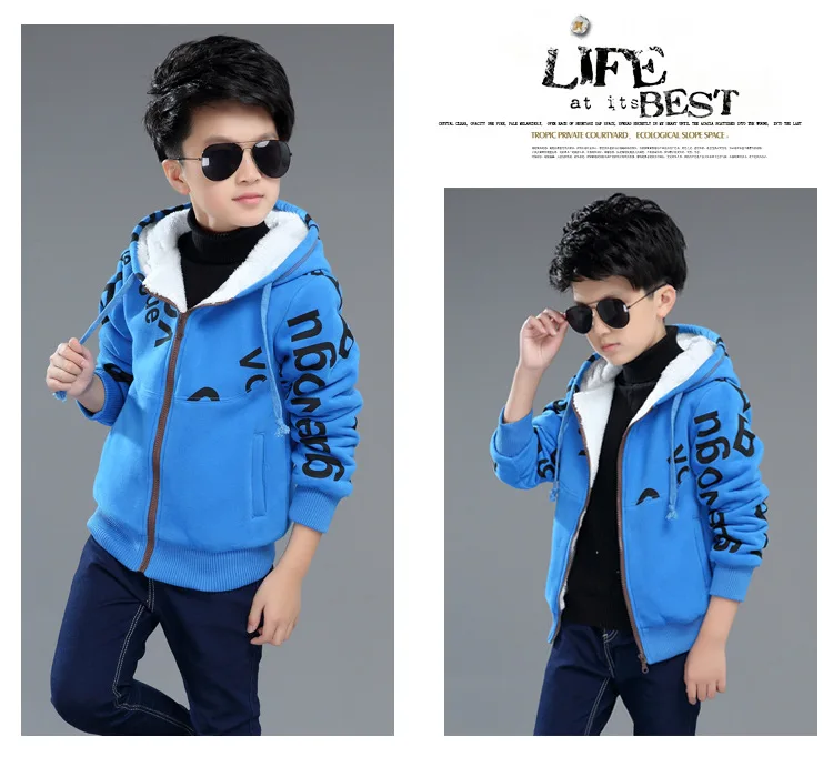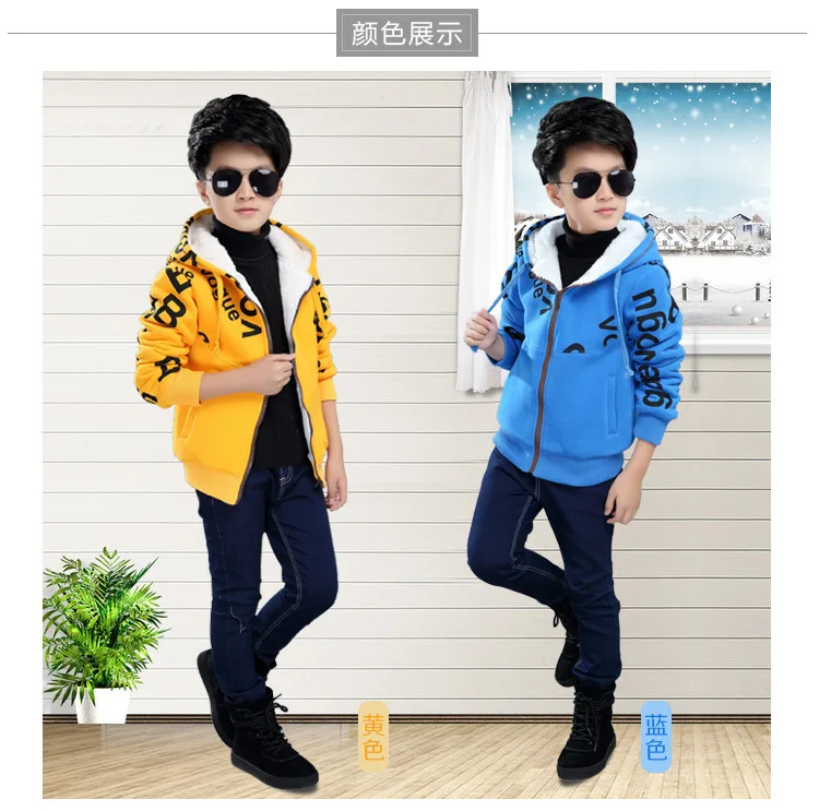 Children Outerwear Winter Boys Hoodies Sweatshirt Kids Thick Fleece Hooded Jacket Teenager Casual Warm Letter Coat Baby Clothes
