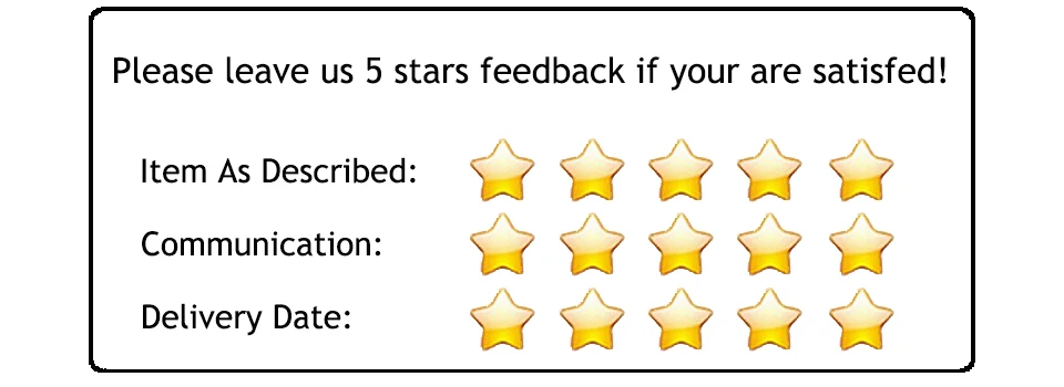 Please write a review with 5 stars feedback for us if you are satisfied with items;