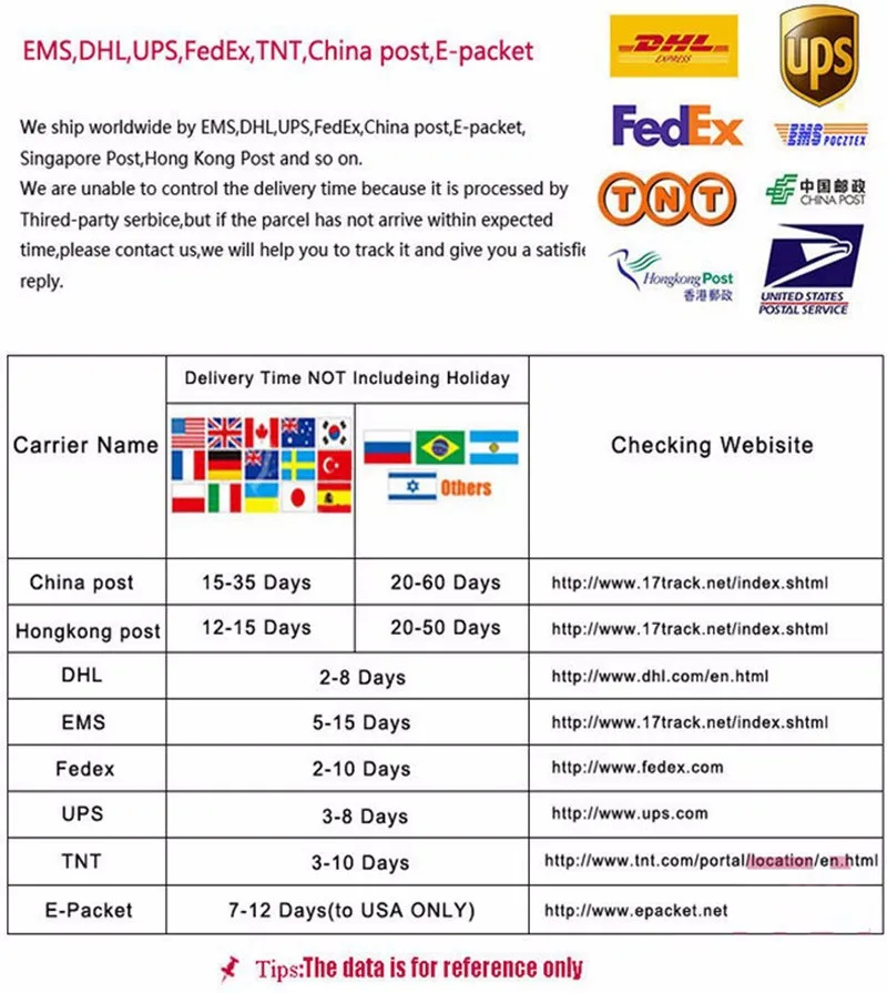 4.Received the goods satisfied, please give us 5 stars feedback, if you have problem, please contact with me, I will reply you within 12 hours,i will help you to solve problem!Wish you have a relaxed and happy shopping!
